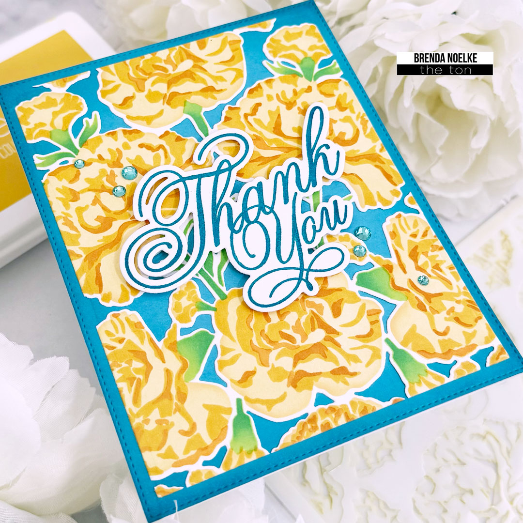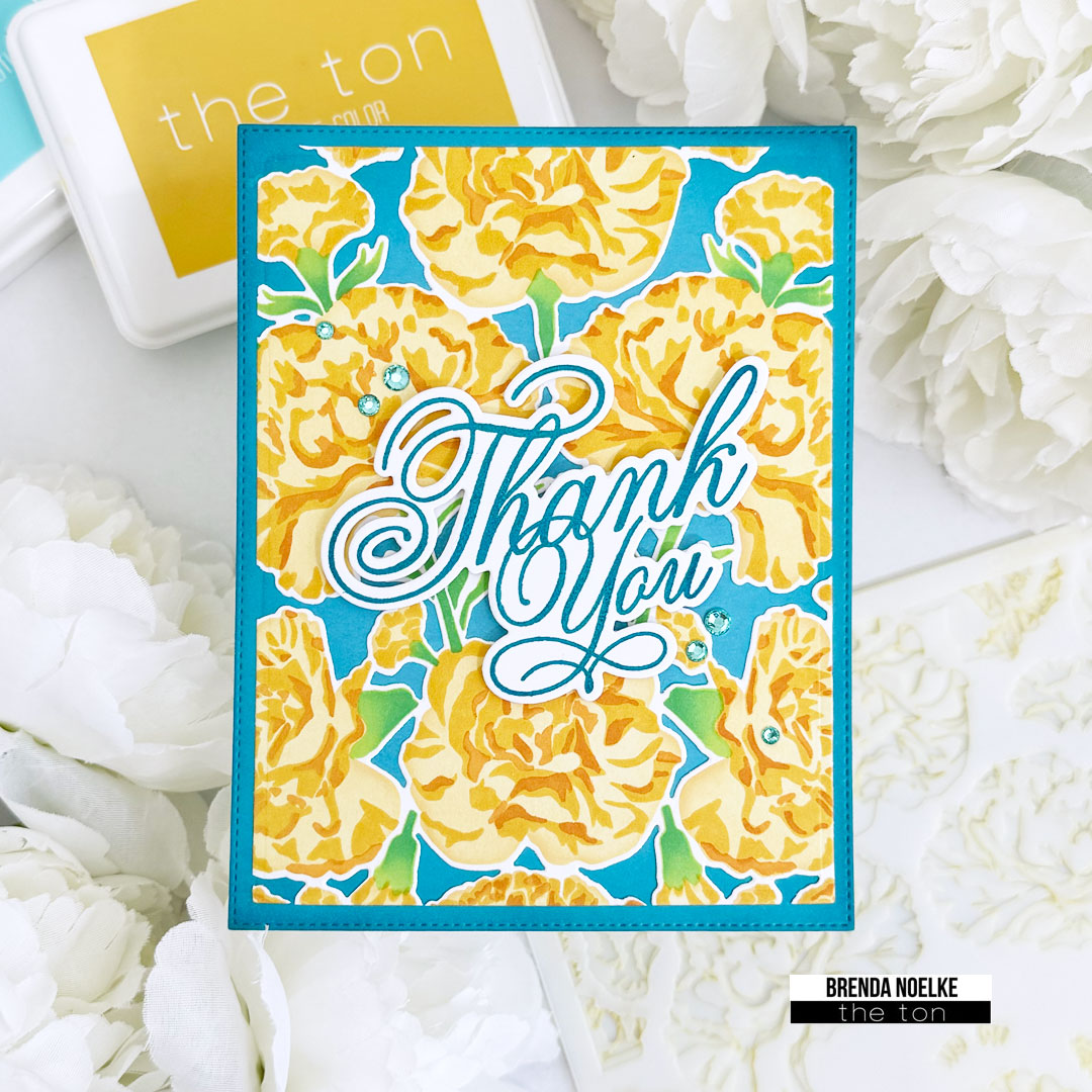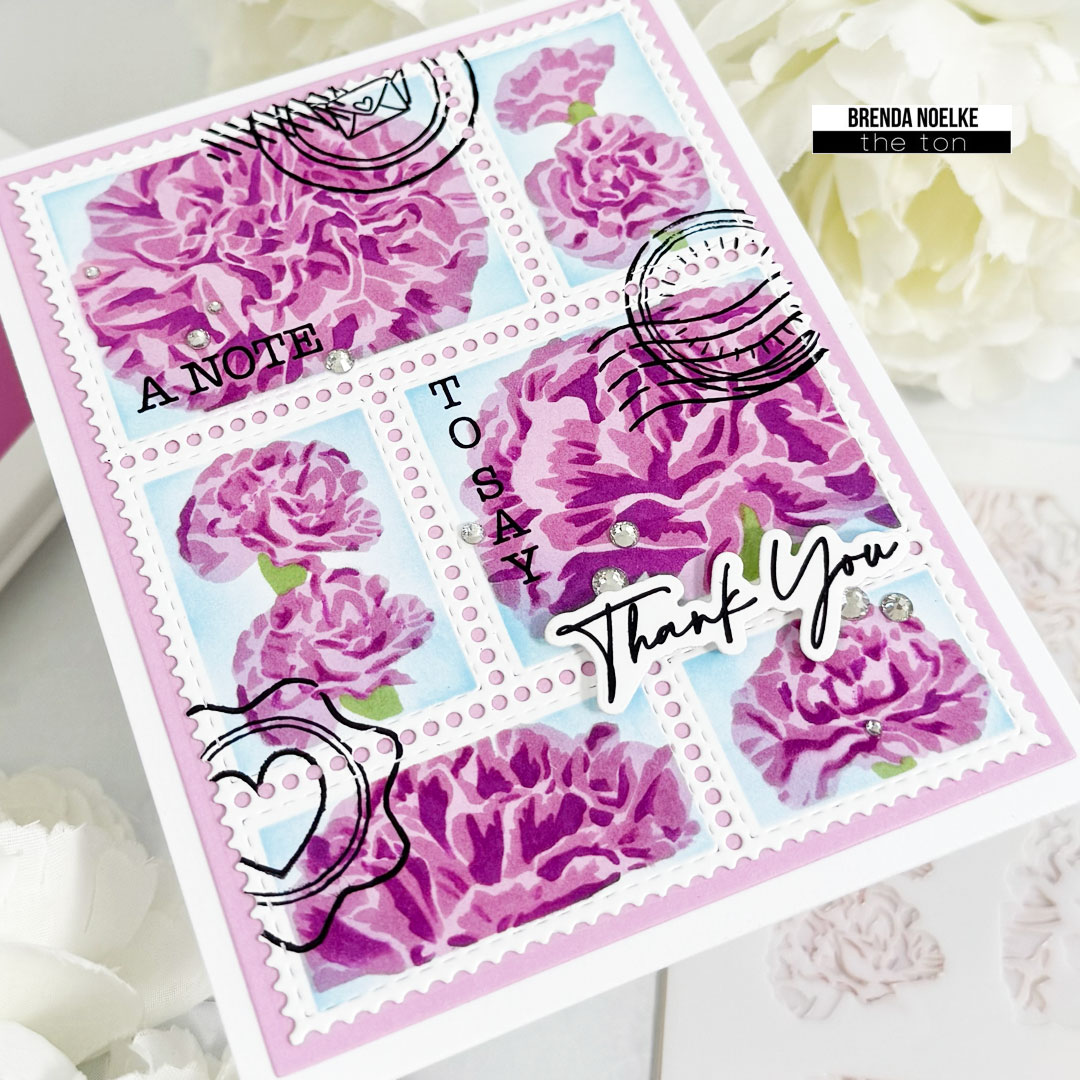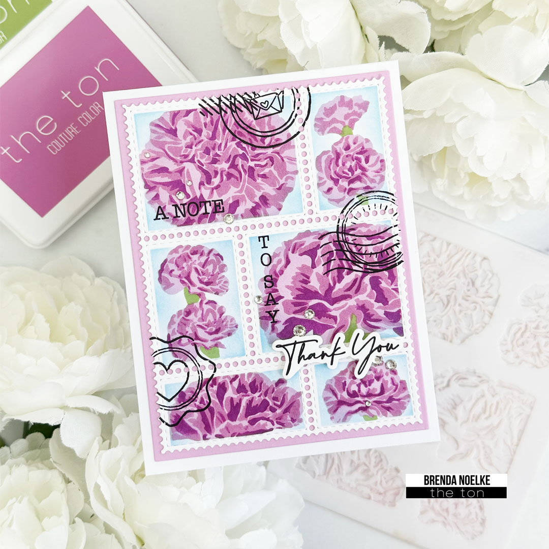 Hello, friends and happy Tuesday!! Brenda here with a card featuring the Climbing Carnations Layering Stencil Set!! I’m having so much fun discovering the new ink pad colors and combining them with the older ones!!