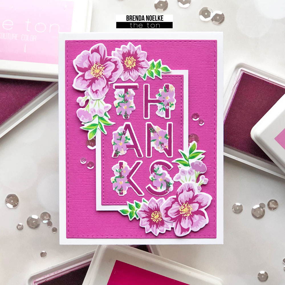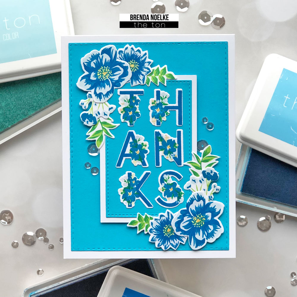 After all of the stamping was done, I die-cut the images with the Spring Layered Alphas Coordinating Coverplate Die and Floral Bits 2 Coordinating Die.