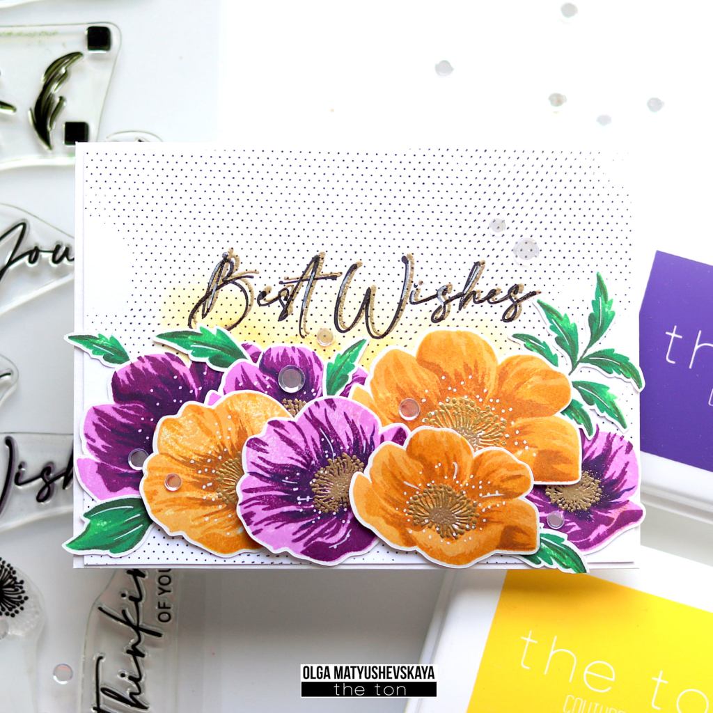 Created by Olga with our Poppy Wishes stamp, Mini Dots Background stamp and Couture Color Inks.