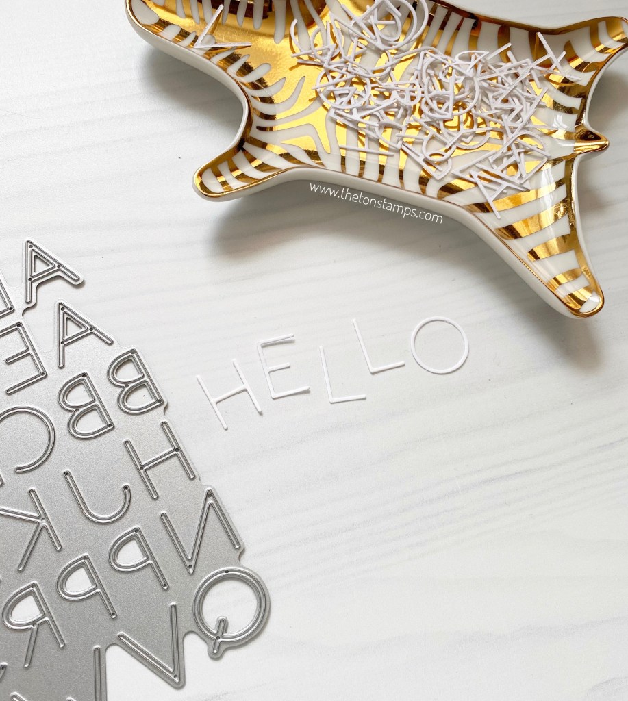 Our Many Sentiments cover dies allow you to die cut 14 words/sentiments in one pass through your die cutting machine. I also included a coordinating that die cuts out a background shadow die cut to help ground these new intricate word dies. Our Many Sentiments die collections comes with 2 dies.