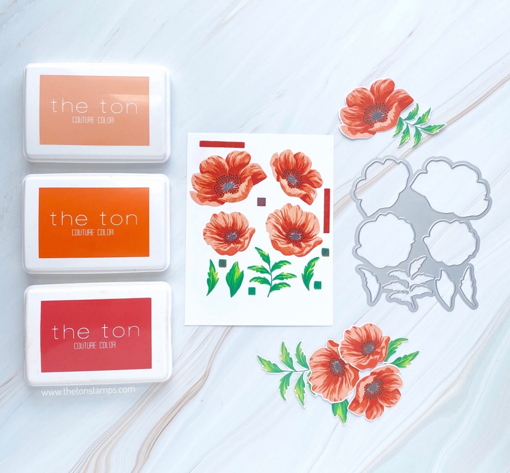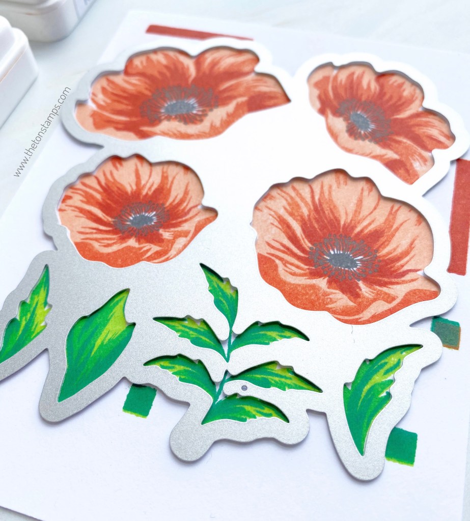 Our Poppy Wishes is a large 9×12 inch photopolymer stamp set which features three layered floral and three layered foliage grouped layering stamps. With our grouped layering stamps, you can stamp multiple images at once three times and then die cut everything in one single pass through your die cutting machine.
