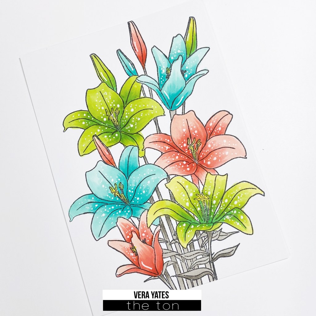 Lilies is one of my favorite flower and they’re so pretty and fun to color. For my card, I stamped and colored the flower. For extra details, I added some dots using white gel pen.