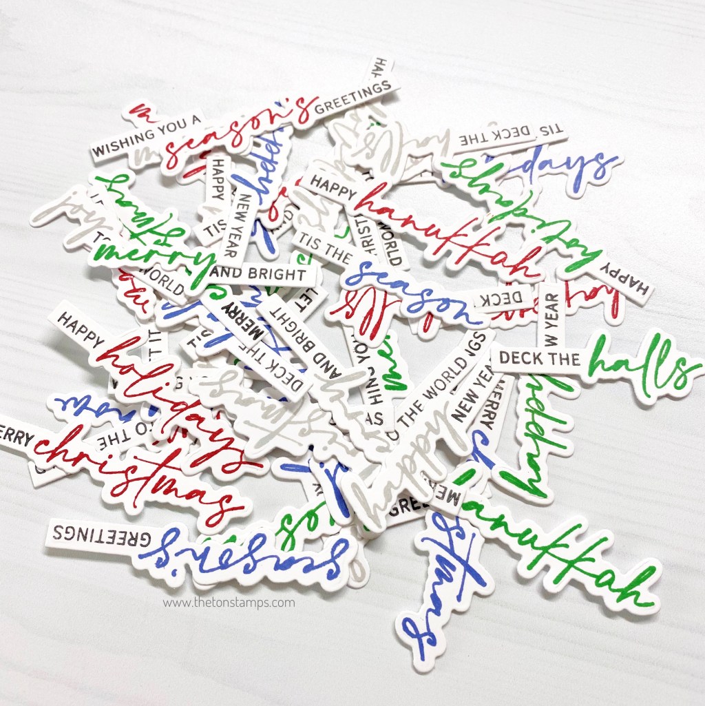 The layered stamps and die will cut out 12 sentiment die cuts. There are also 5 additional standalone sentiment stamps in this set.