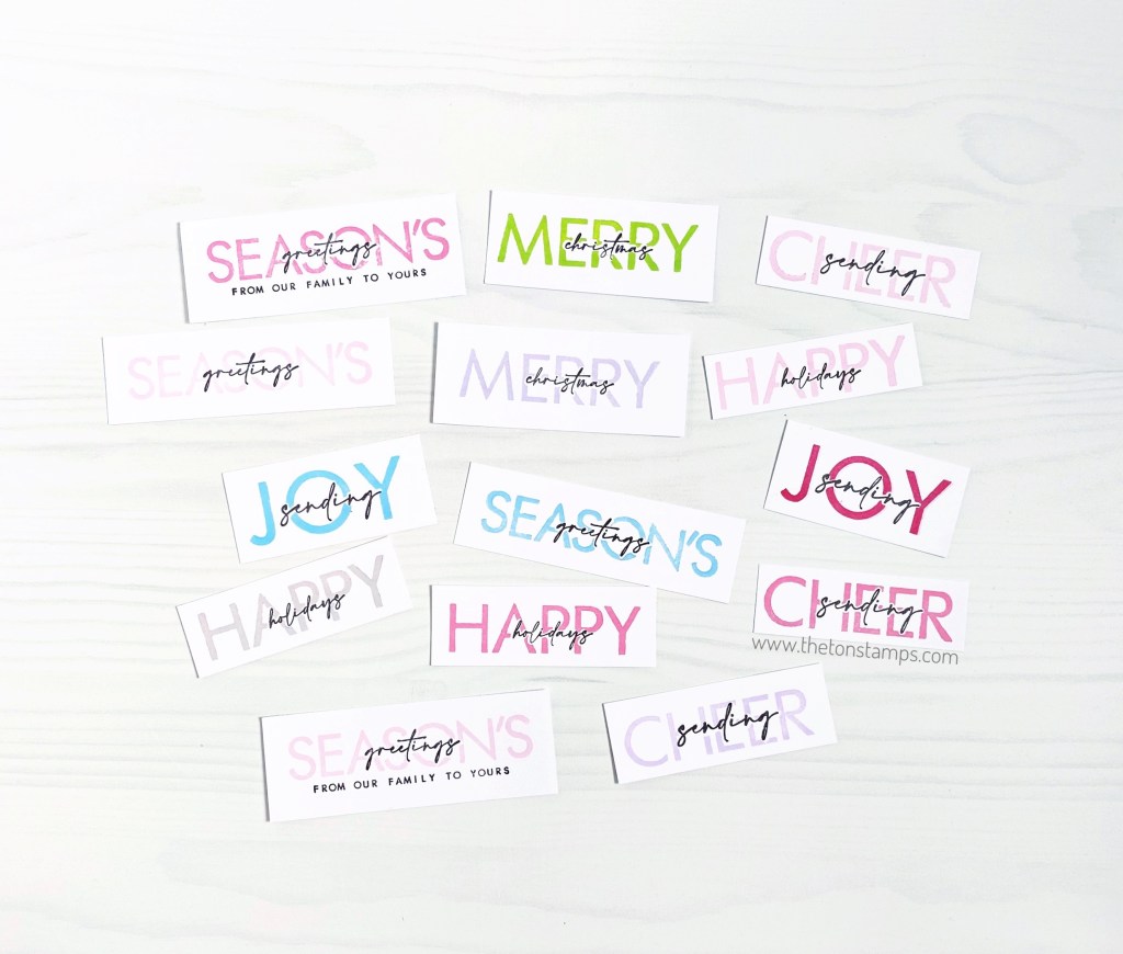 I designed another type of fill it in sentiment set! Our Modern Christmas Greetings features 5 different sentiments with open spaces within the sentiment. There are additional stamps that you can stamp inside those open spaces for a modern look!