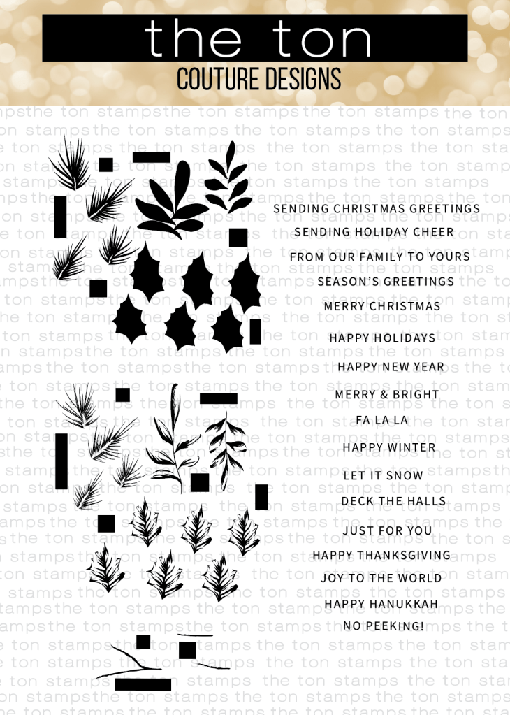 My goal with the remaining stamp designs was to create a collection of stamps that you can use together to create holiday clusters and wreaths.