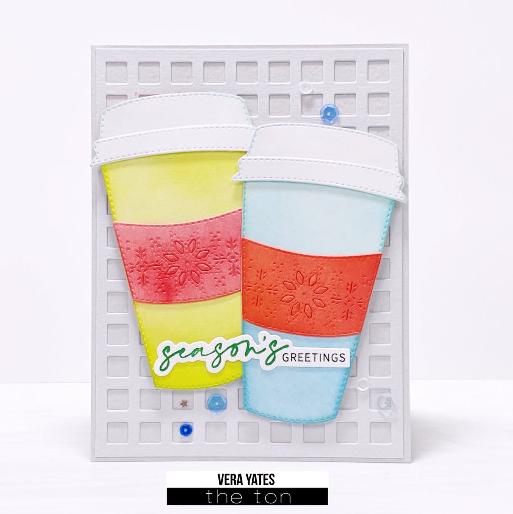 Created by Vera using our Holiday Coffee Dies and Grid A2 Coverplate Die and Easy Expressions Holiday Stamp Set.