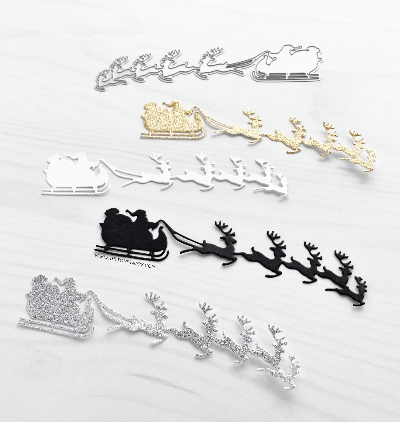 Our new Santa’s Sleigh Die measures approximately 5 inches across and will add a whimsical touch to your holiday papercrafts.