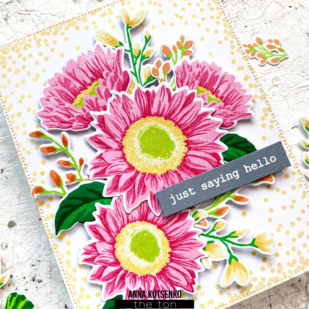 Hello, everyone! Anna here with a floral card I made using Grouped Fresh Sunflowers stamps and matching die.