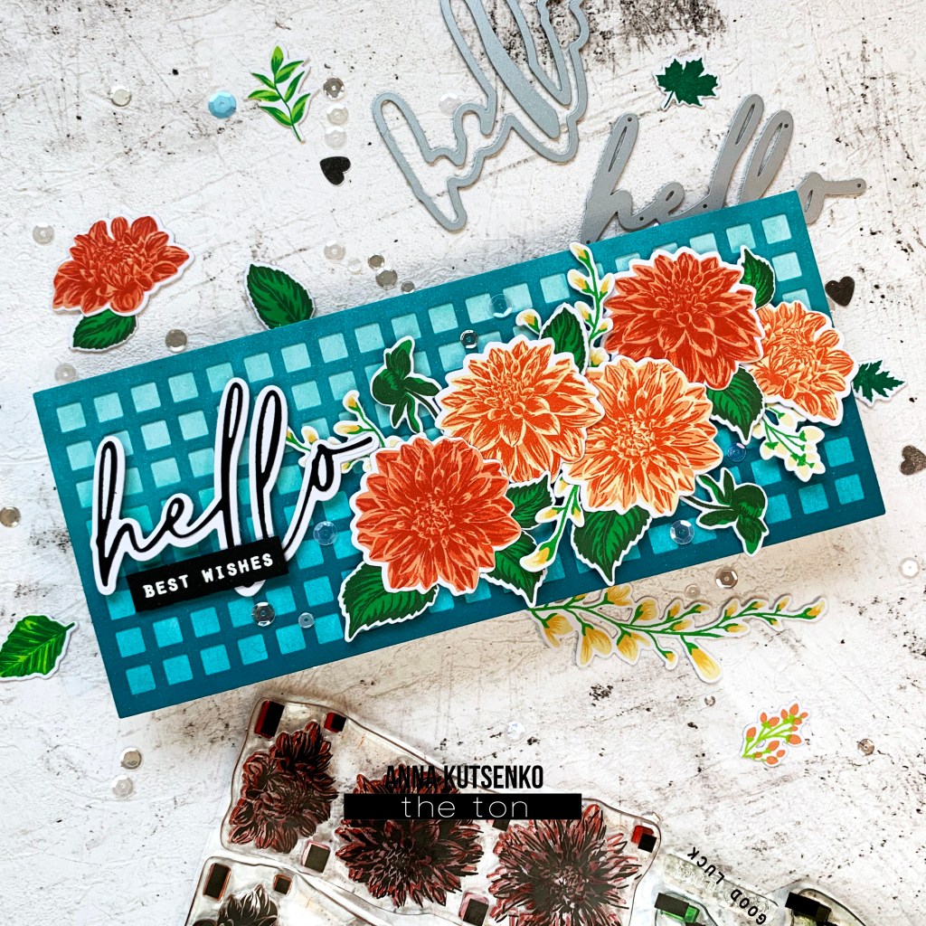Hello, everyone! Anna here today with a floral card I made using Grouped Fresh Dahlias stamps and coordinating die.