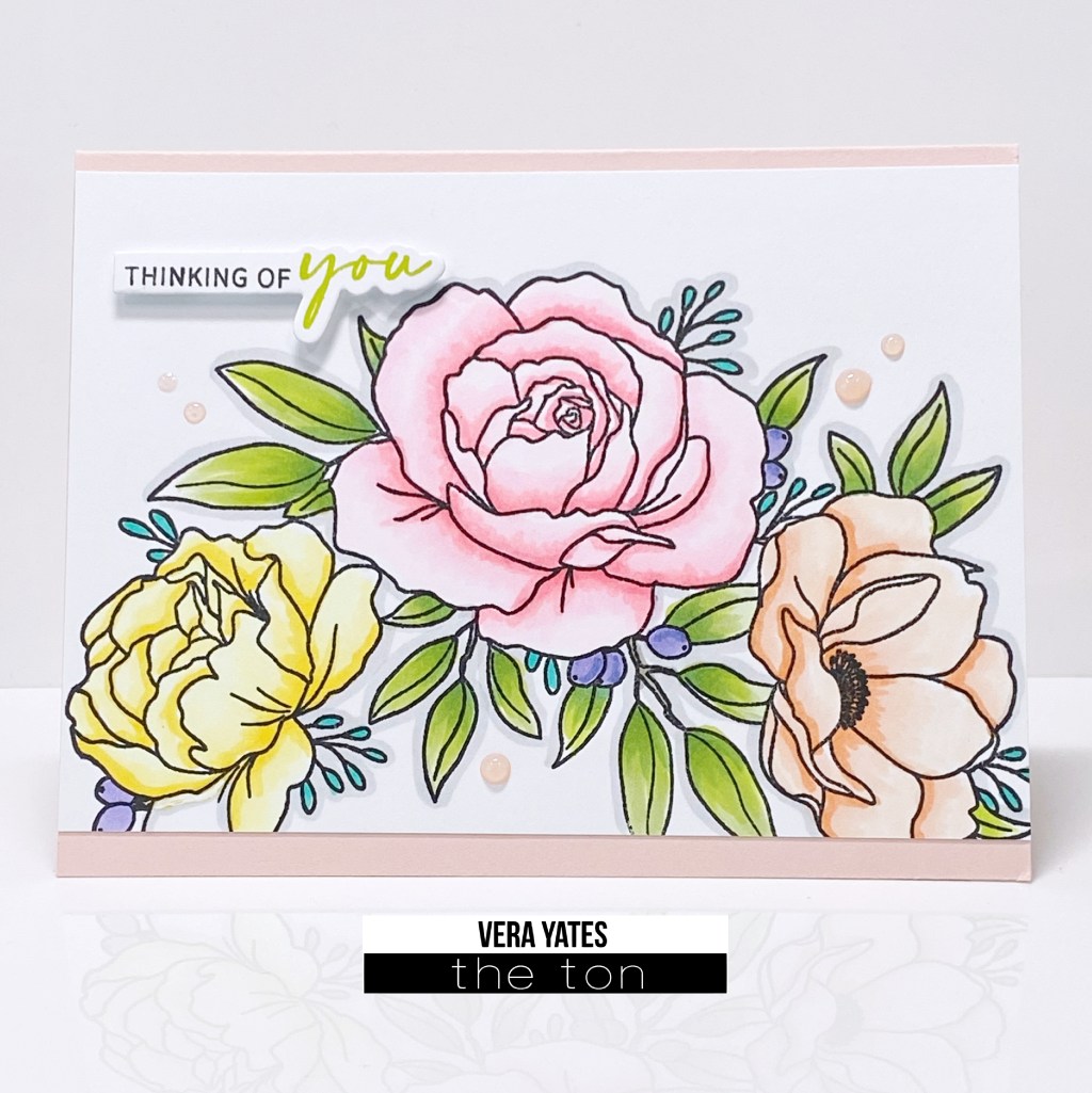 Hi all. Vera here to bring you fresh inspiration to start your week. I always enjoy making cads with flower image and of course as usual The Ton new release has plenty of gorgeous sets to play with. For today, I have a couple cards to share. First up, I am showcasing the pretty Bonny Blooms set.