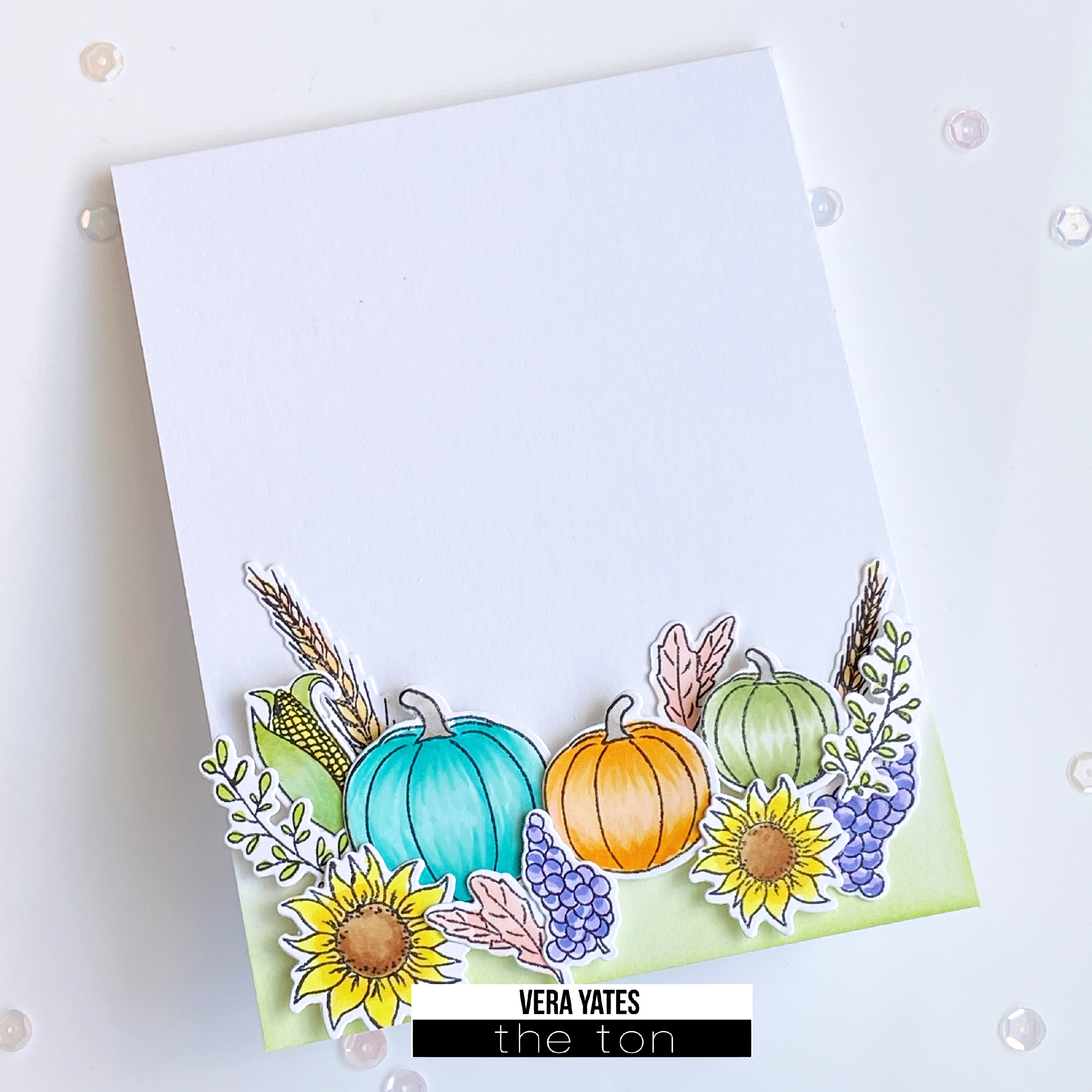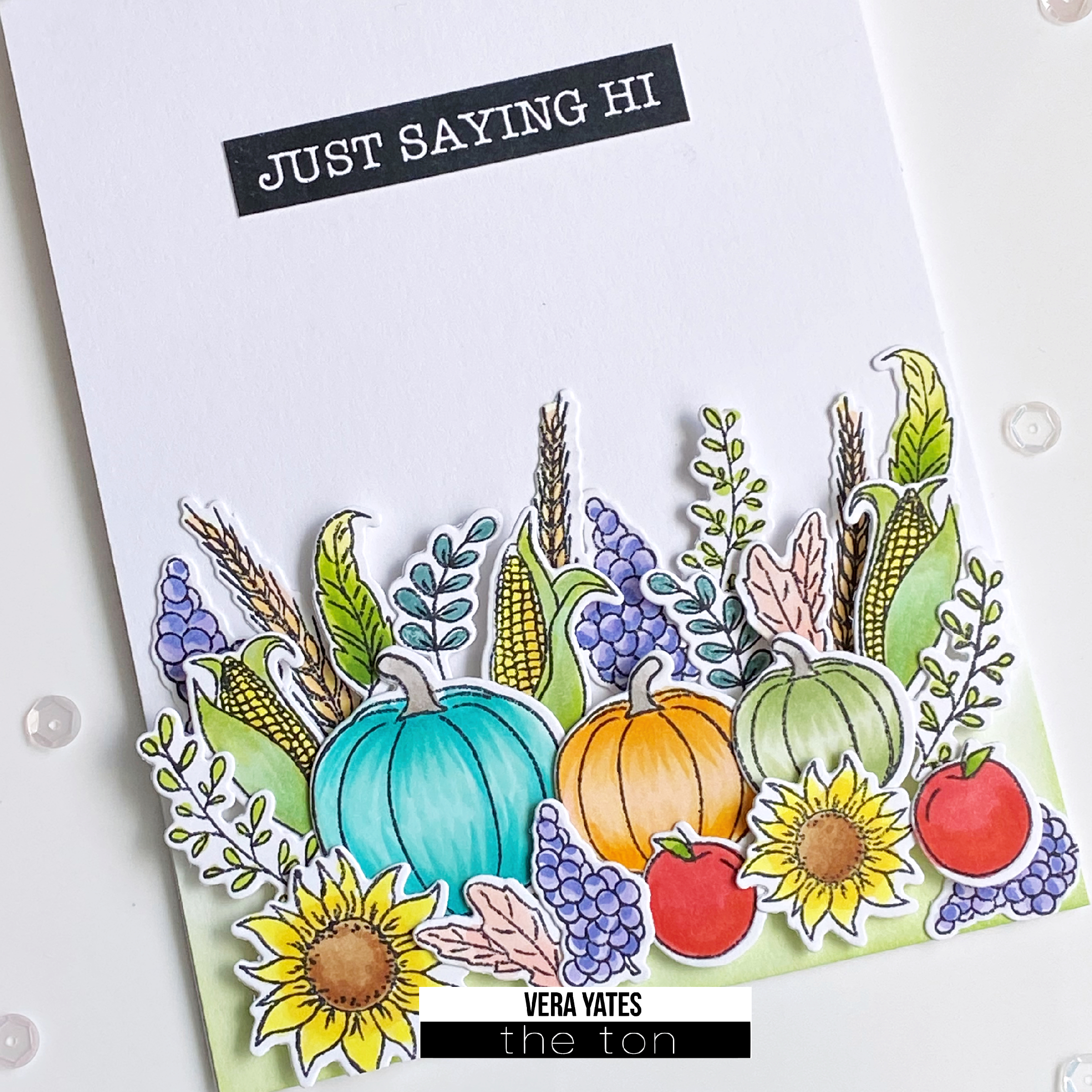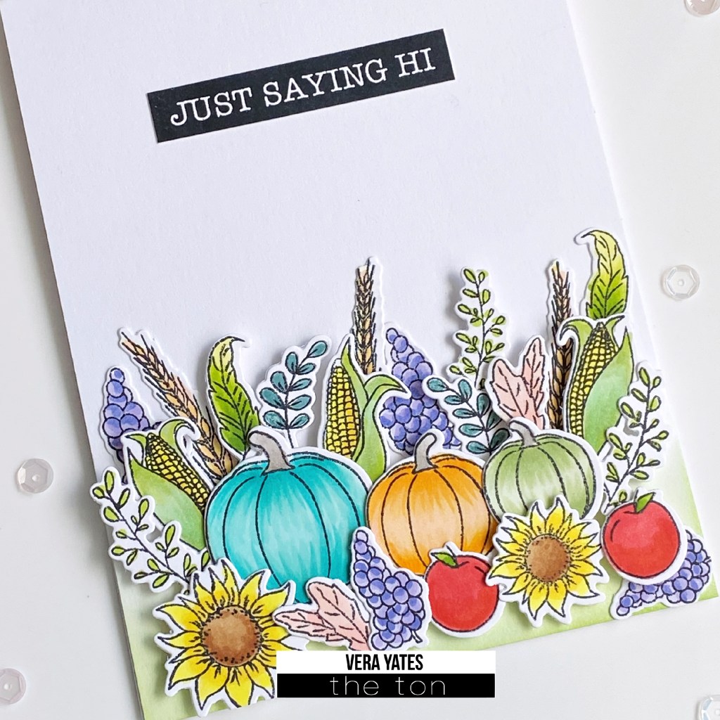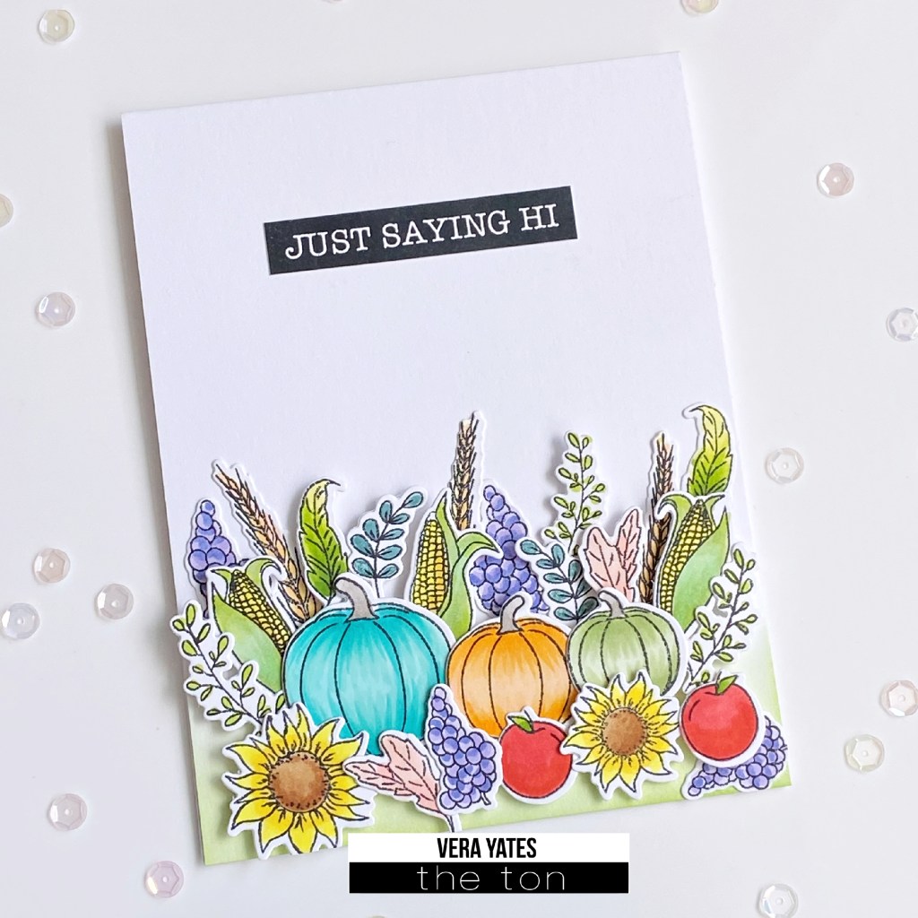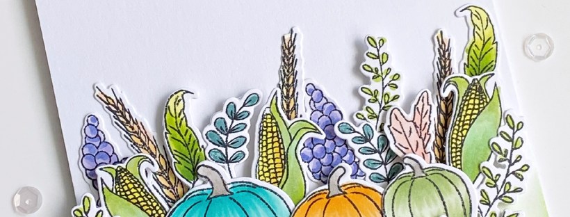 Hi all. Vera here. I have to admit that I often struggling in making fall cards. I guess because I love lots of colors that I often find yellow and orange combo just not as fascinating. Don’t get me wrong, I love those colors in nature, but on card, that’s not my preference. Well, till I learn to let myself go outside the box. Who said fall colors can only be yellow, orange and green right? I think a pop of teal or even pink make fall cards more fun.