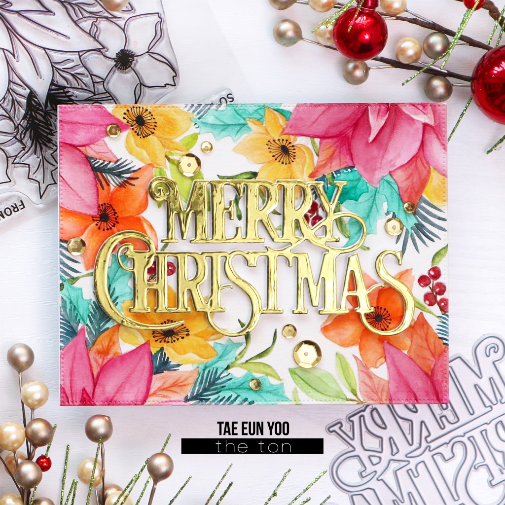 Since Poinsettias are really a tropical flower, I find them very comfortable on your Tropical Christmas card, TaeEun! But I do want to know if those black stamens were stamped, or added with your most capable hand?