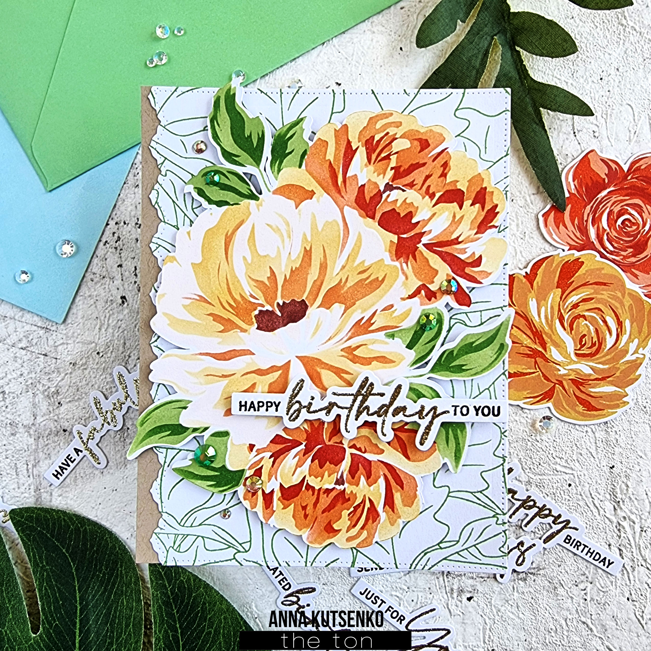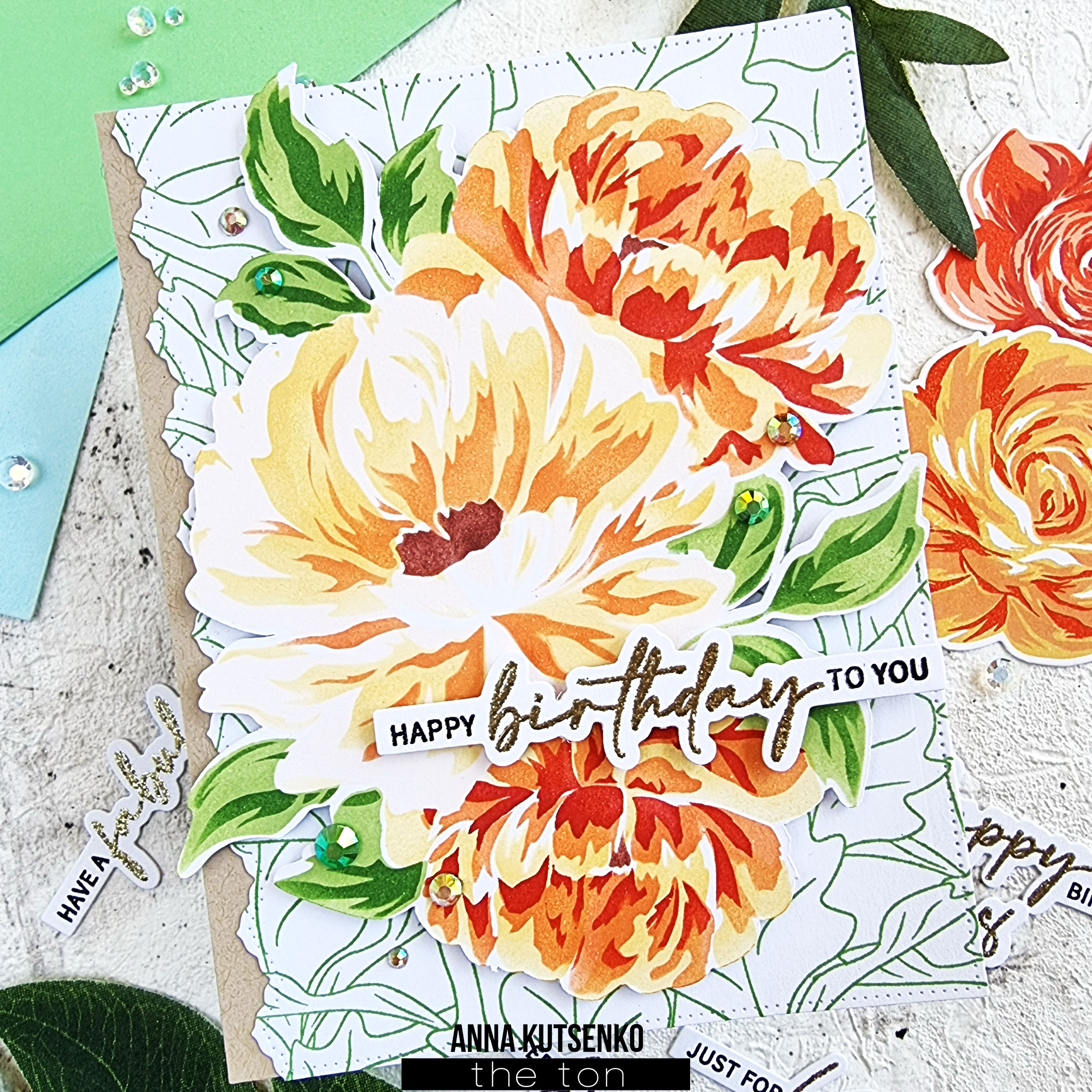 Hello, everyone! Anna here with a floral card showcasing peony bouquet from Blended Peonies Layering Stencils.
