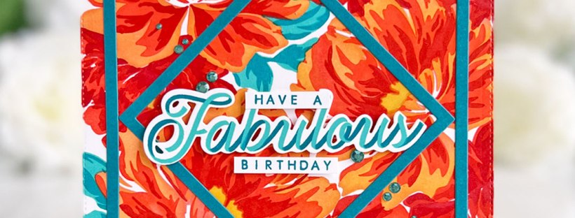 For the sentiment, I combined “have a” and “fabulous” from the Ribbons Affirmations Stamp Set with “birthday” from the Ribbons General Stamp Set. “Fabulous” was stamped with Bright Emerald and Hot Tourmaline inks, then cut out with the Ribbons Affirmations Die. The rest of the sentiment was stamped with Hot Tourmaline and cut into thin strips. The sentiment was popped up with foam tape and the Light Aqua Gems were a perfect match!!