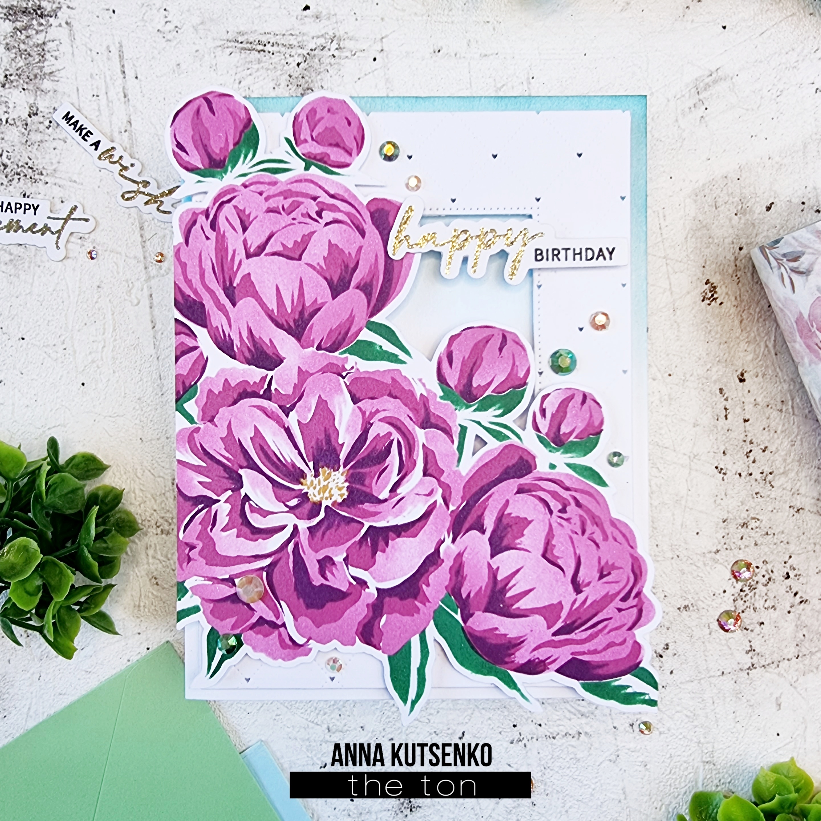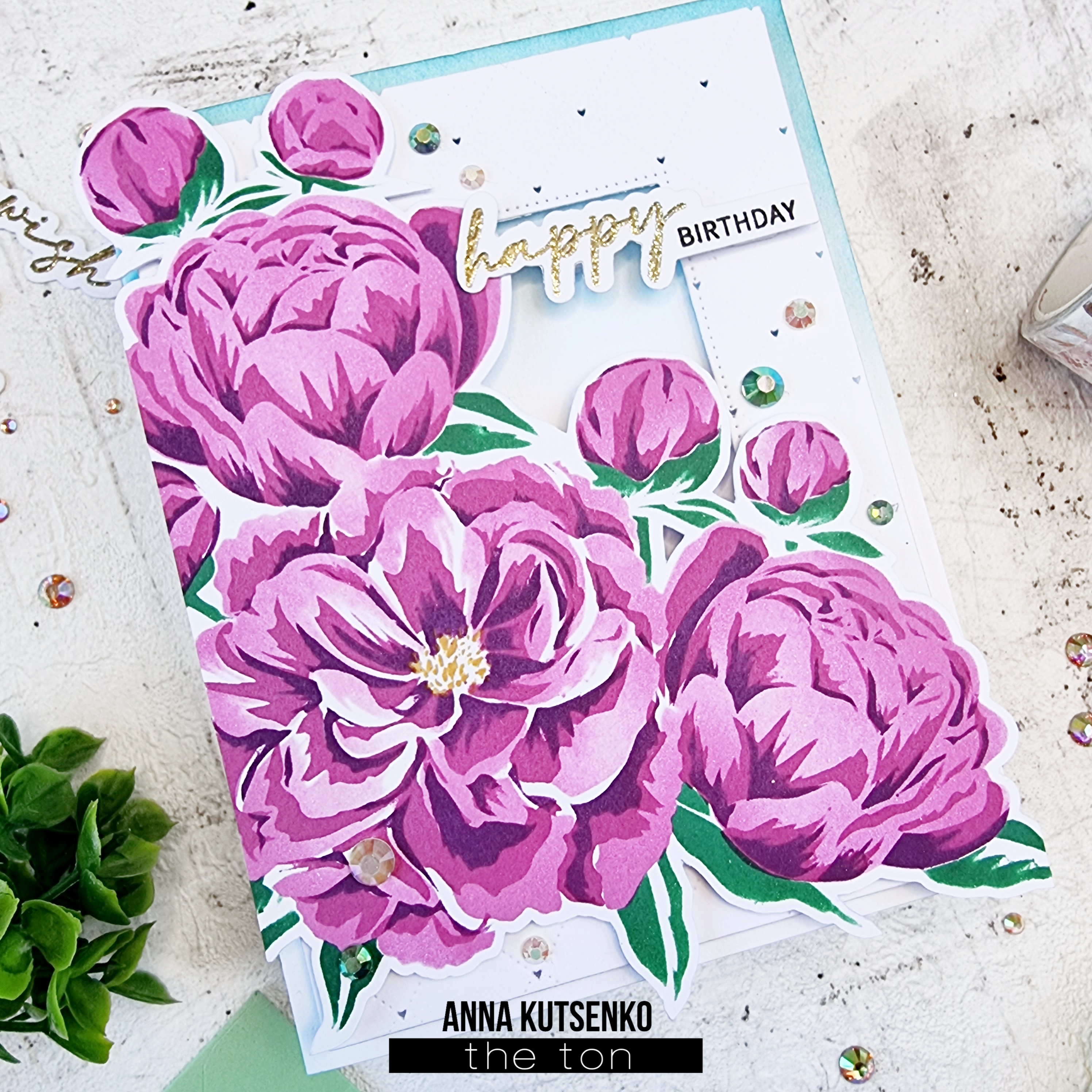 Hello, everyone! Anna here with a birthday card I made using Fairest Peonies Cluster Layering Stencils.