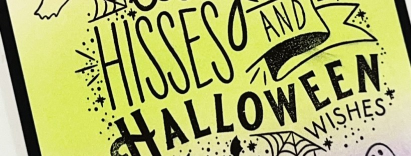 I think the ghosts on this set are pretty adorable. I don’t like scary stuff, always prefer cute, so this set definitely fit my style. Well, since it’s a quick card, there’s not much I can write about it. Hah!! I hope you enjoy today’s card and like the card said, I send you bugs, hisses and Halloween wishes. π