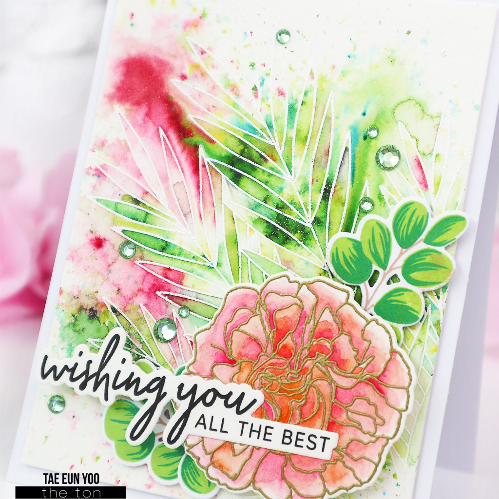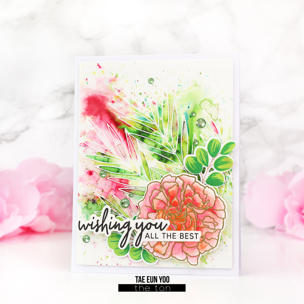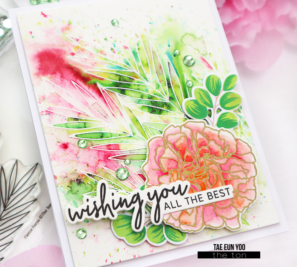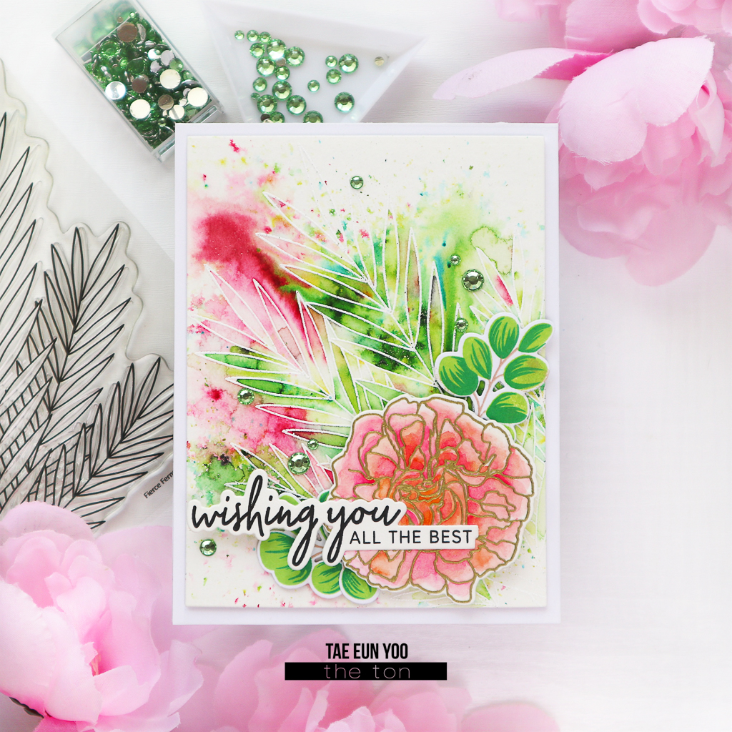 Hello everyone! Hope you’re having a great week so far! It’s TaeEun here today with a card I made using the Fierce Ferns, the Grouped Fresh Carnations and the Eucalyptus sets. Actually I was going to make a card using only the Fierce Ferns which is a large Fern leaf image. But I couldn’t resist adding a flower 🙂 !