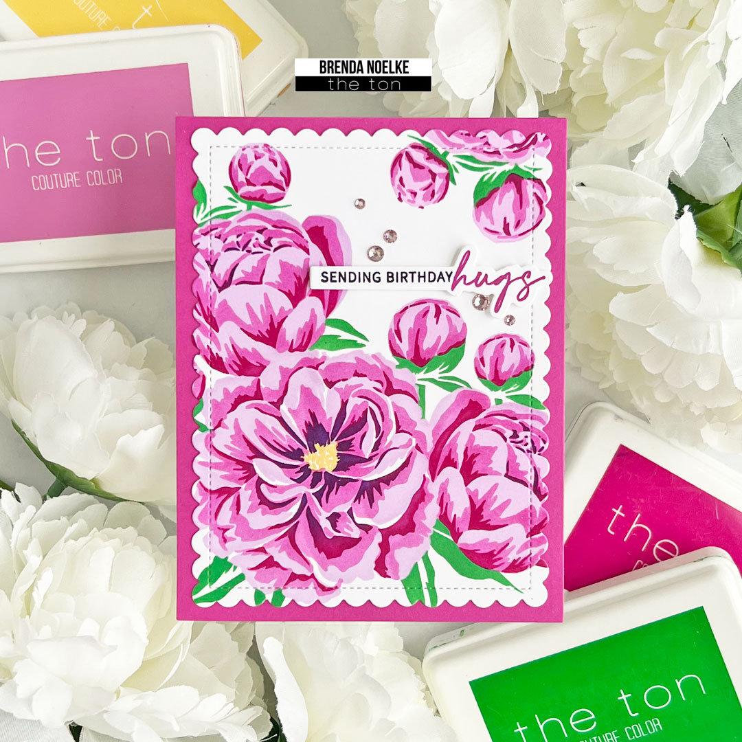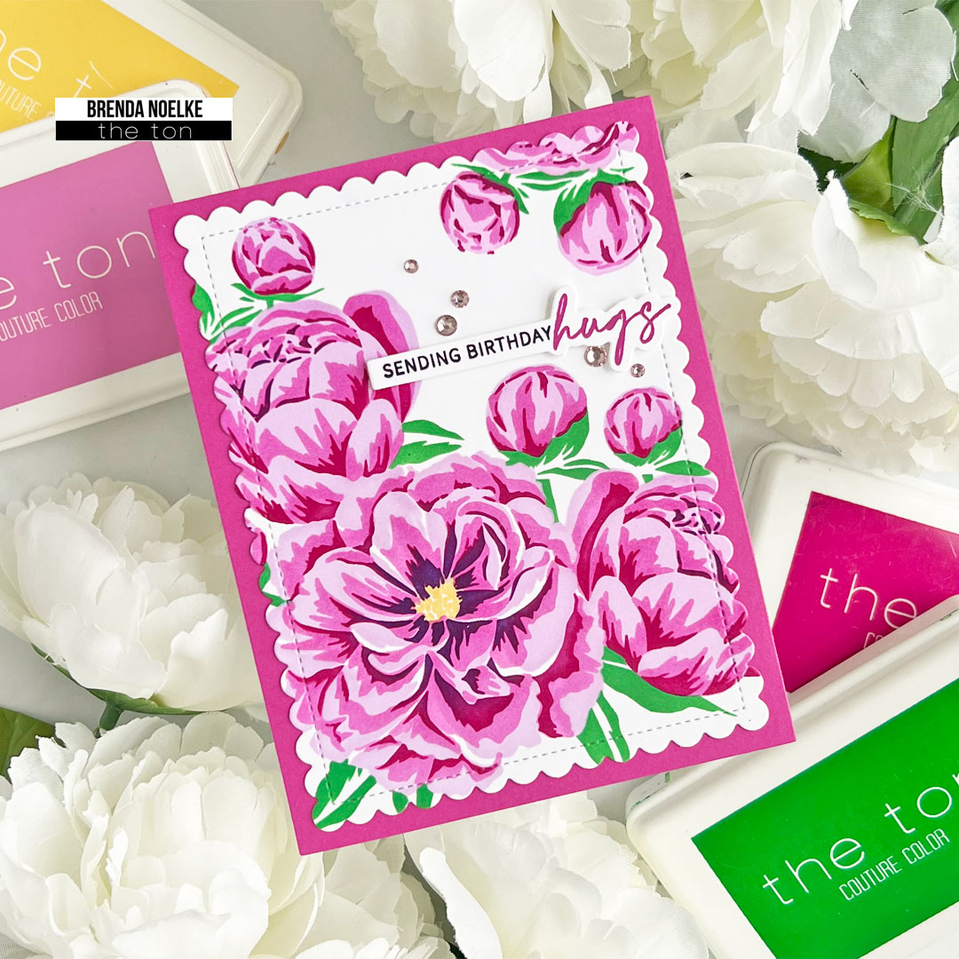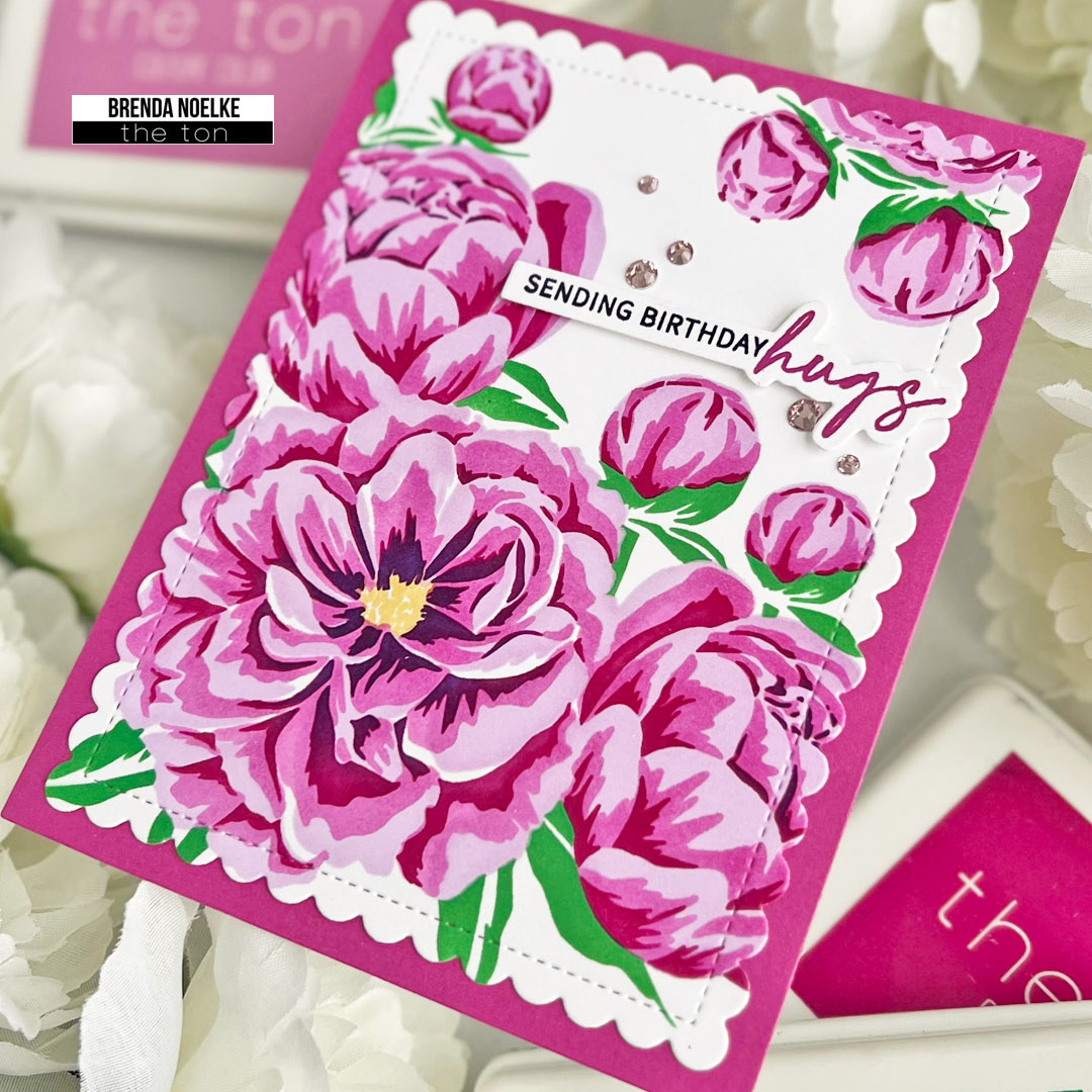 Hey, crafty friends!! Brenda here with a floral birthday card to share with you featuring the Fairest Peonies Cluster Stencil Set!! Layering stencils are all the rage and I really enjoy combining and layering ink colors to create different looks.