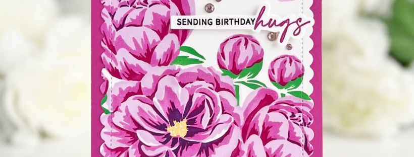 Hey, crafty friends!! Brenda here with a floral birthday card to share with you featuring the Fairest Peonies Cluster Stencil Set!! Layering stencils are all the rage and I really enjoy combining and layering ink colors to create different looks.