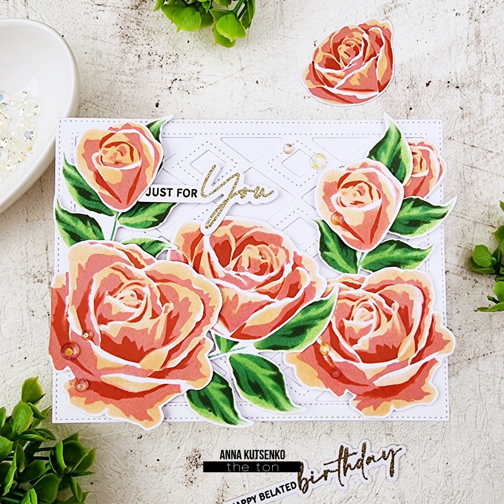 Hello and Happy Friday, everyone! Anna here today with a card featuring new Roses Unlocked Layering Stencils from Summer 2023 Release.