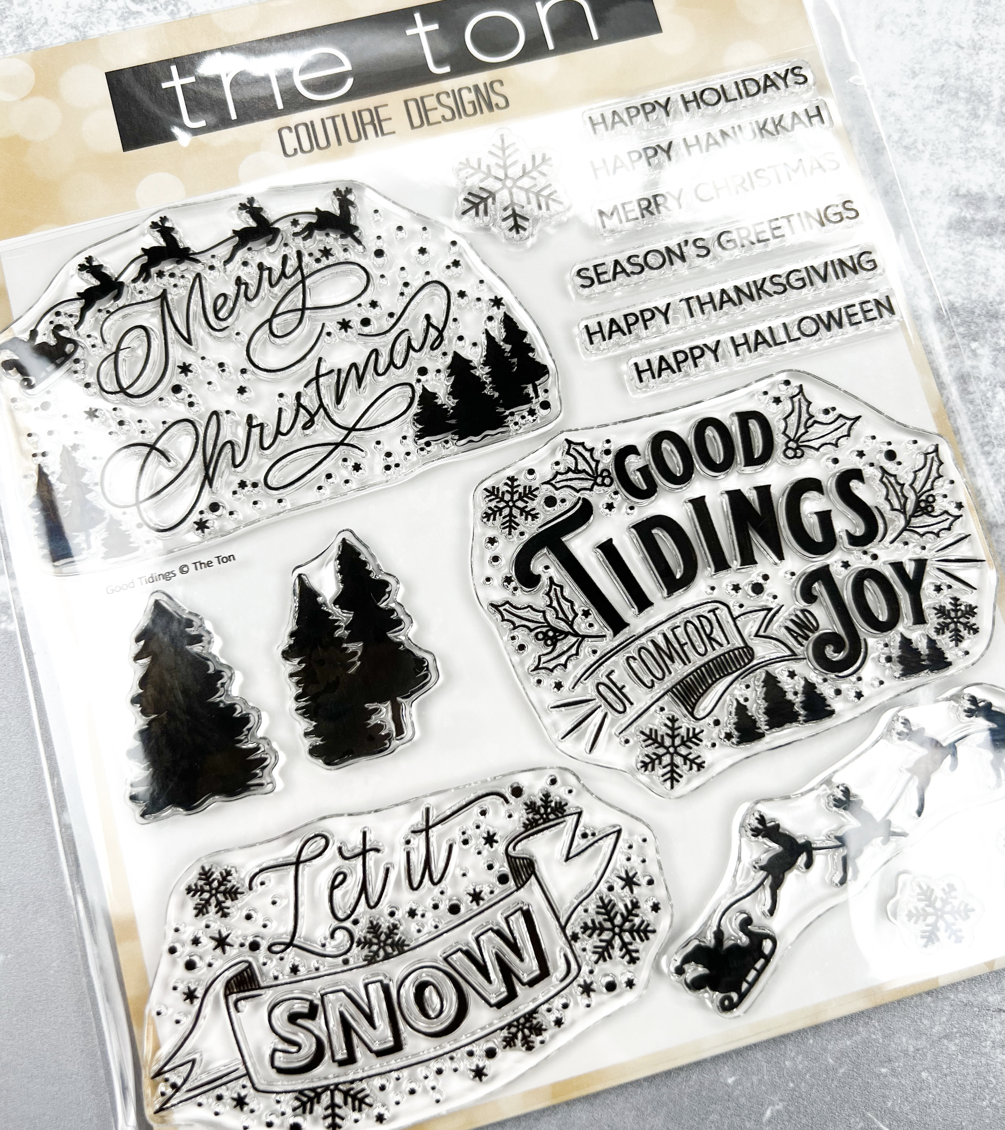 Next up is our Good Tidings Sentiment set which is a 6×6 inch photopolymer set.