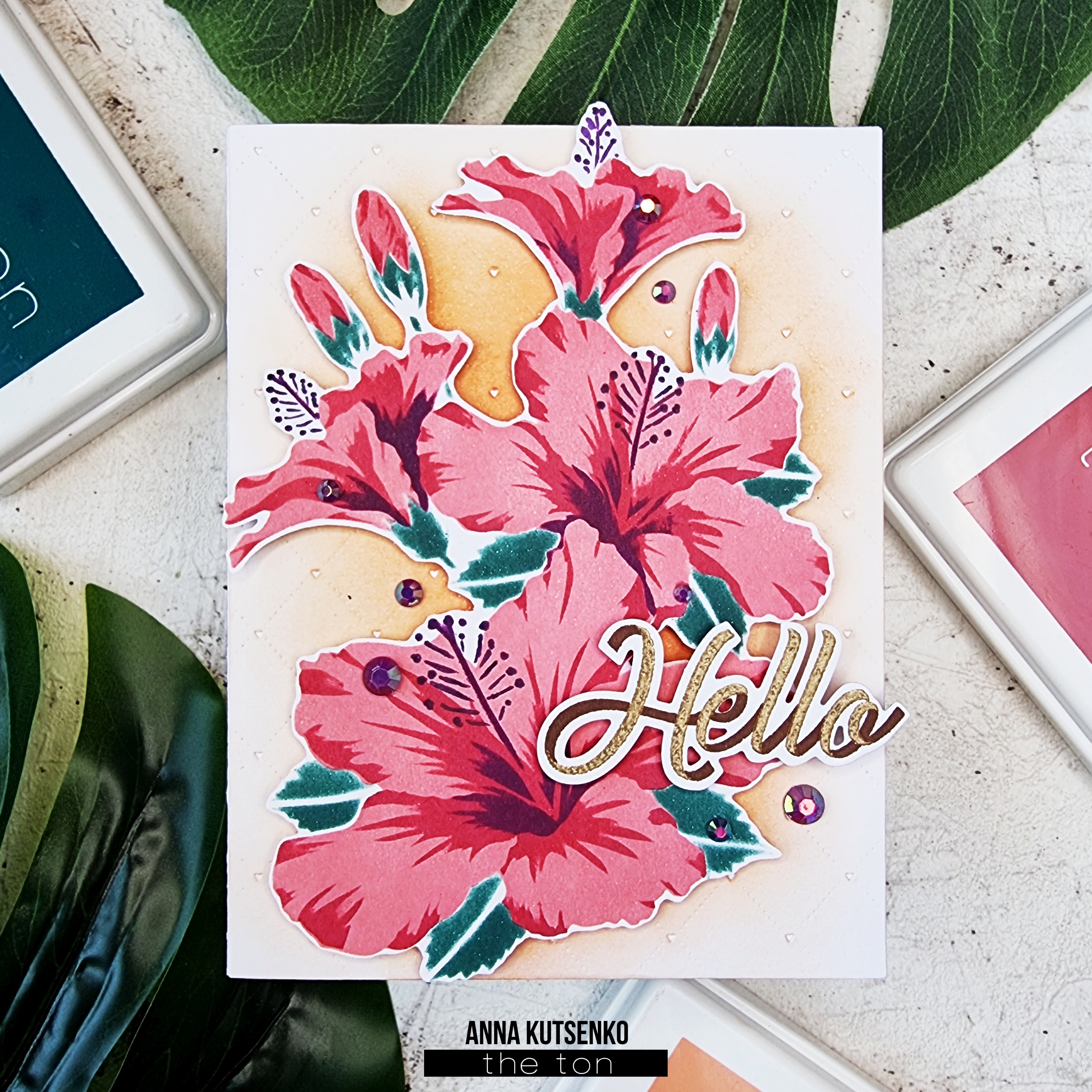 Hello and happy Wednesday, everyone! Anna here today with a “Hello” floral card featuring new Climbing Hibiscus Layering Stencils.