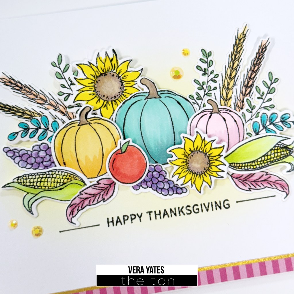 Hi friends. Vera here. As we just celebrated Thanksgiving yesterday, here in the States, I thought this is the perfect excuse for me to get older set out and give them some love. For today’s card I am showcasing Autumn Coloring Bits. I know, it’s a day late for Thanksgiving card, but hey, better late than never, right?