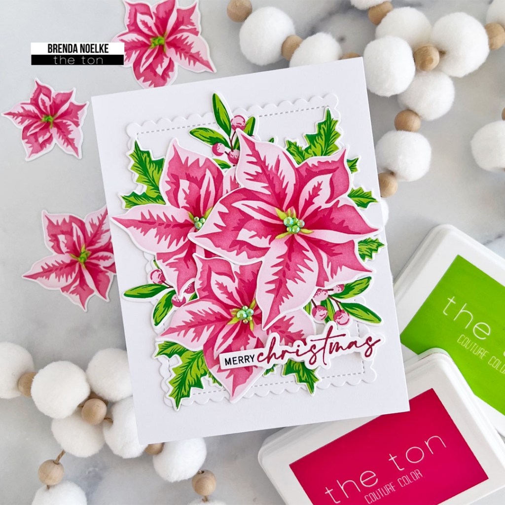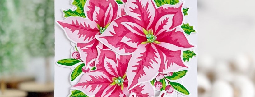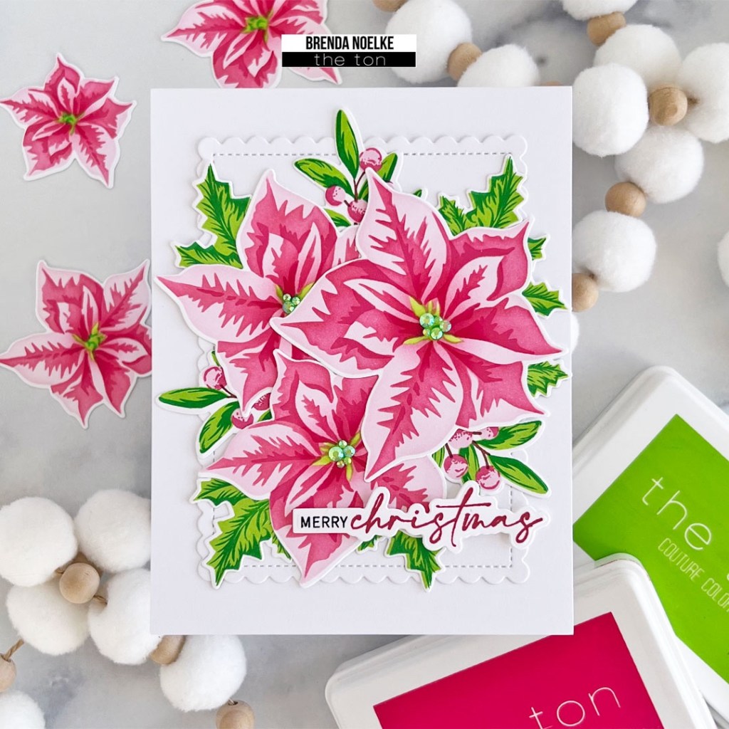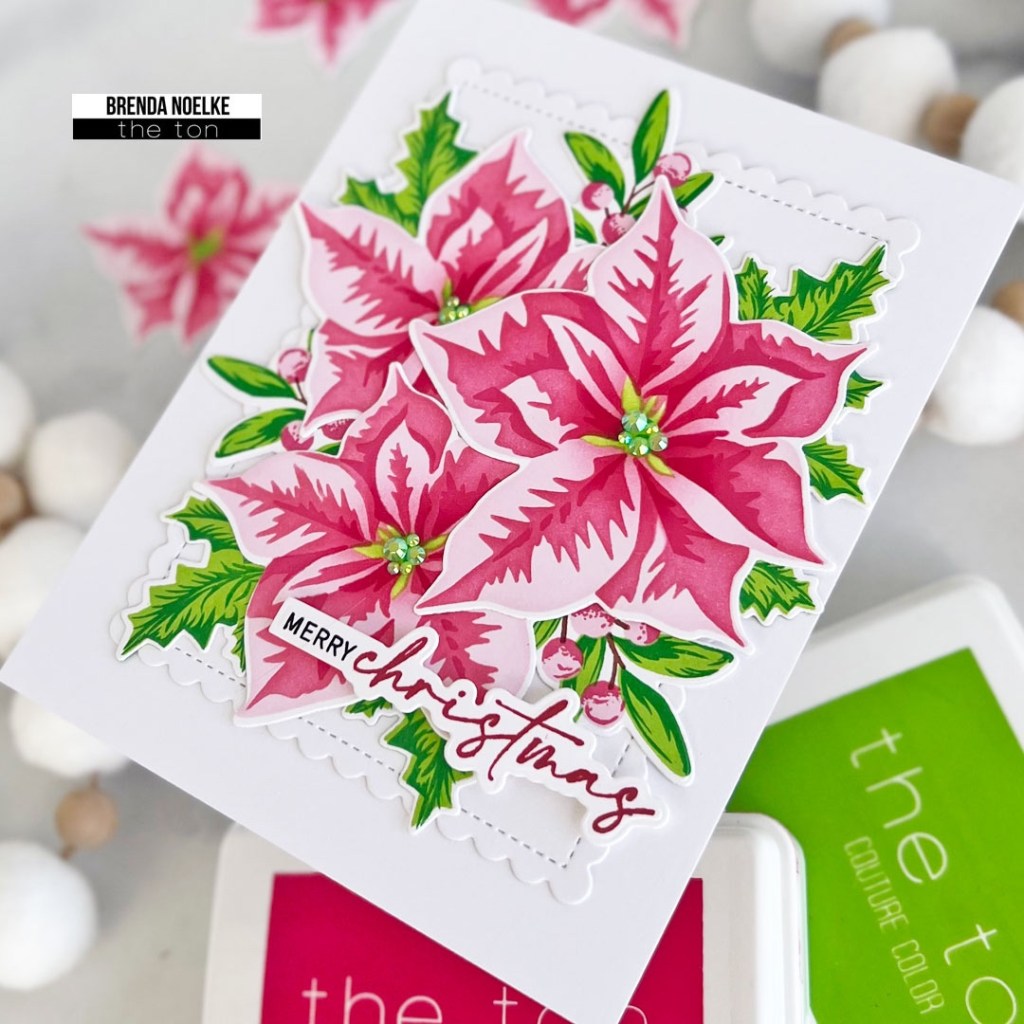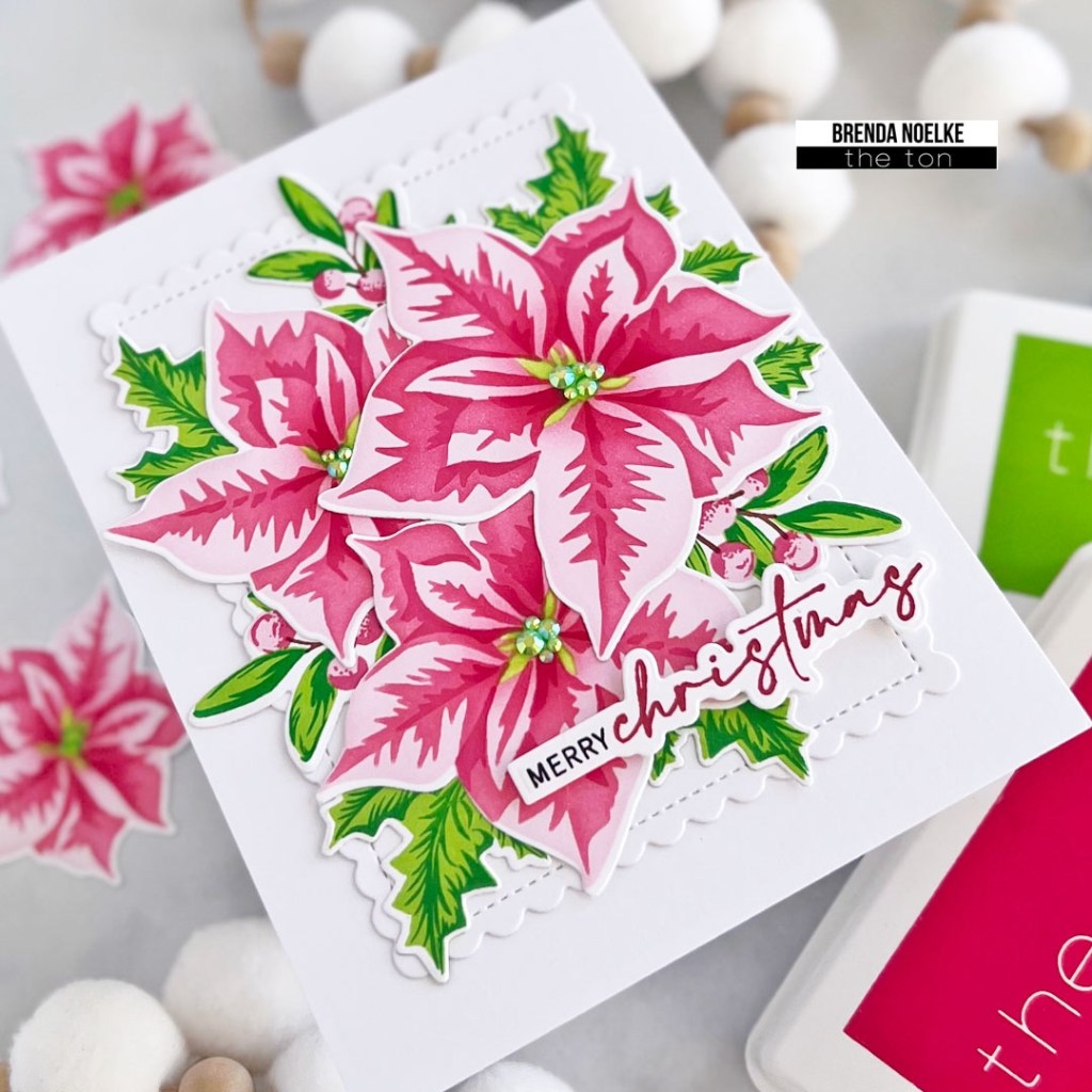 Hello, crafty friends!! Brenda here with a Christmas card featuring the Poinsettias Unlocked Layering Stencil Set!!