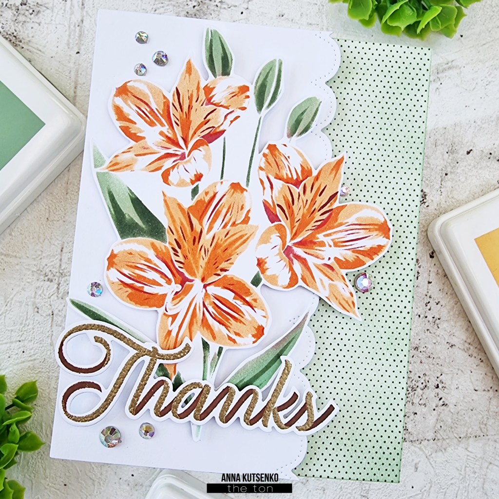 Hello and happy Wednesday, everyone! It’s Anna here today with a floral card I made using Climbing Peruvian Lilies Layering Stencils.