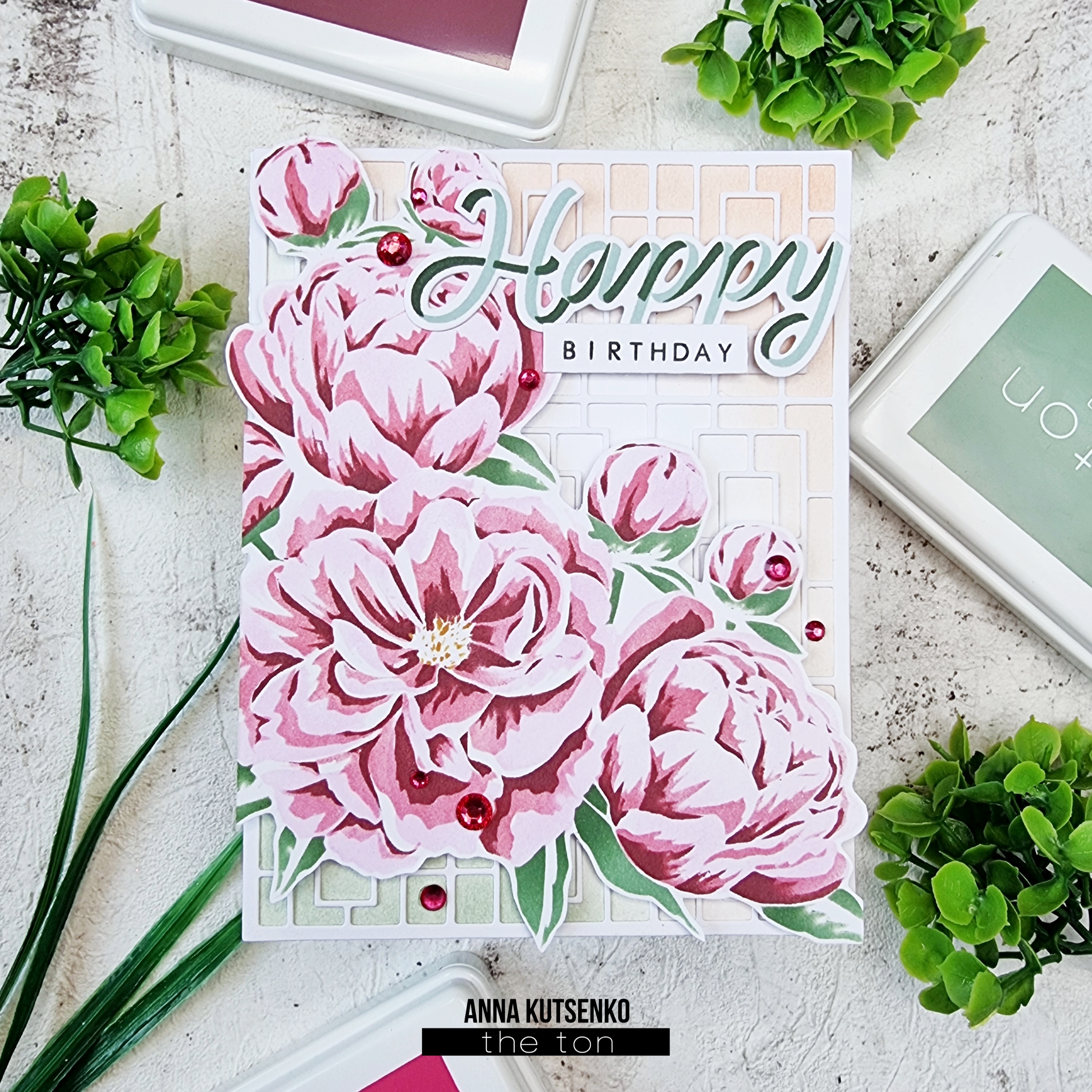 Hello, everyone! Anna here today with a birthday card that was made using Fairest Peonies Cluster Layering Stencils.