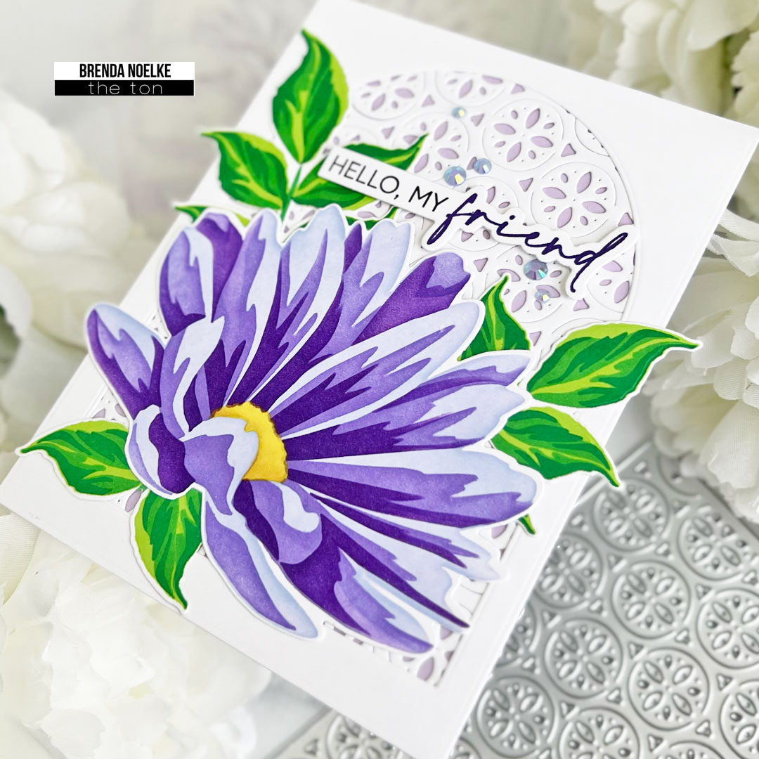 Happy Valentine’s Day, my crafty friends!! Brenda here with a floral friendship card featuring the Calming Cosmos 2 Layering Stencil Set in one of my favorite ink combos!!