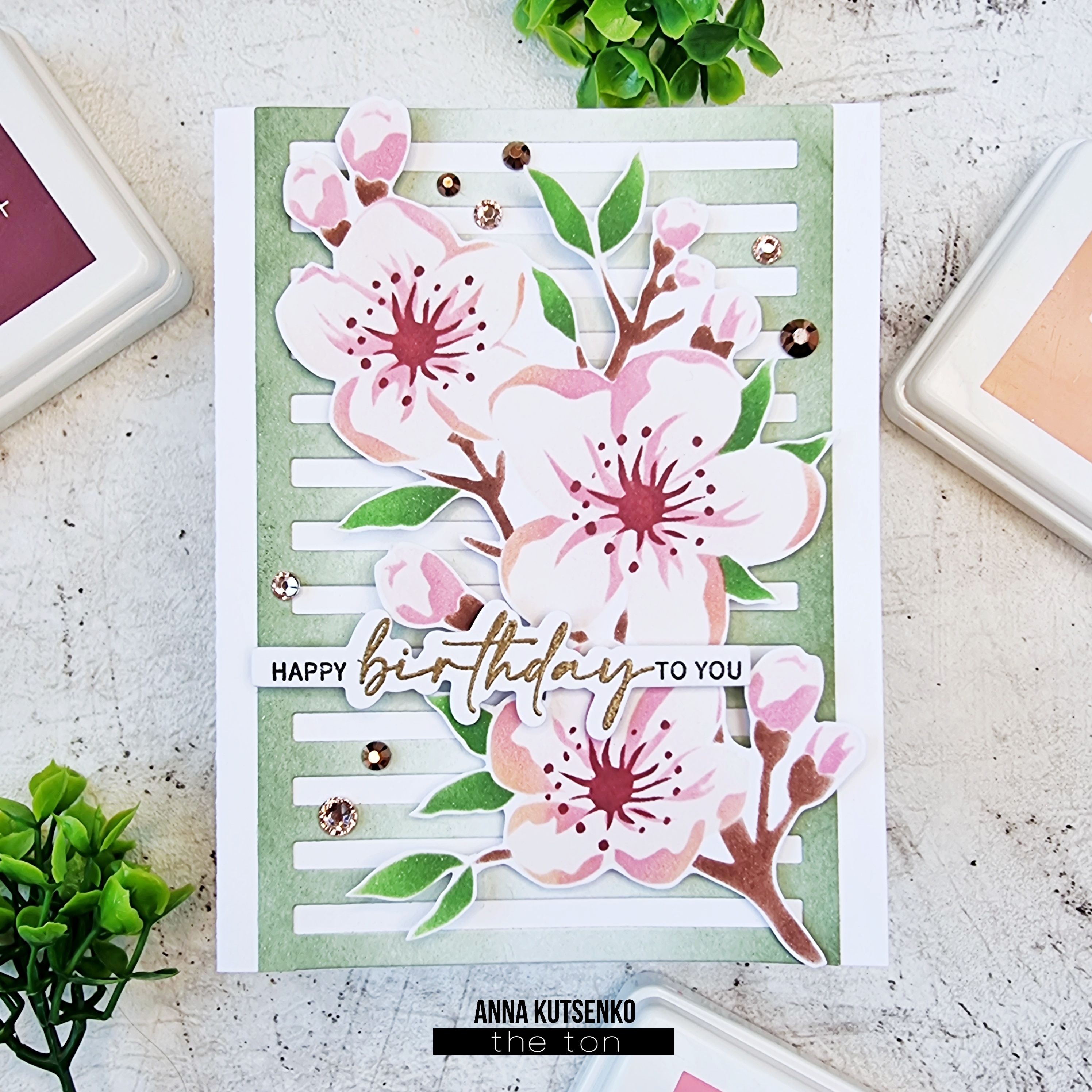 Hello, everyone! Anna here today with a card featuring new Sweet Cherry Blossoms Layering Stencils from Anniversary 2024 Release.