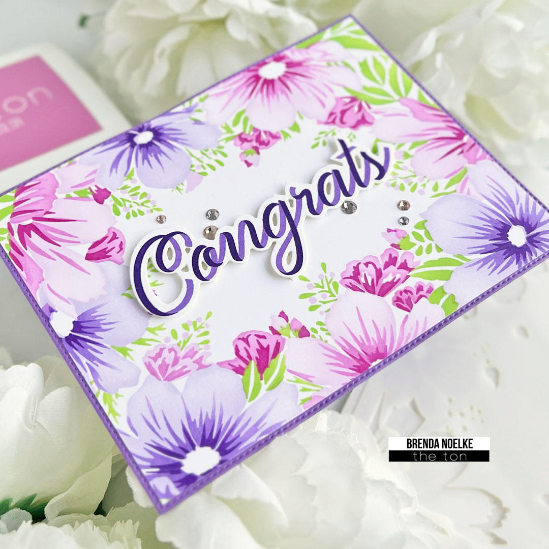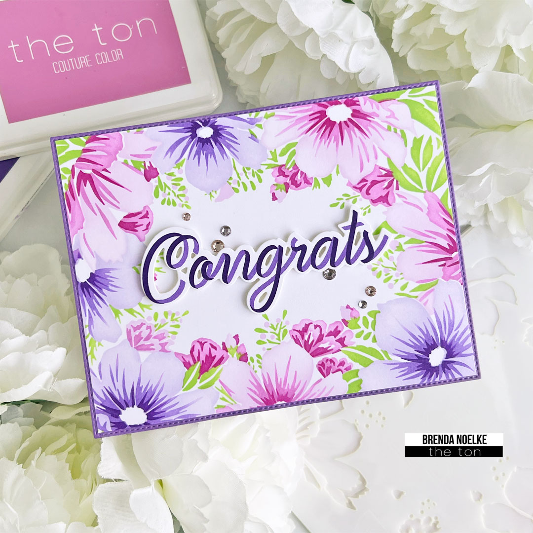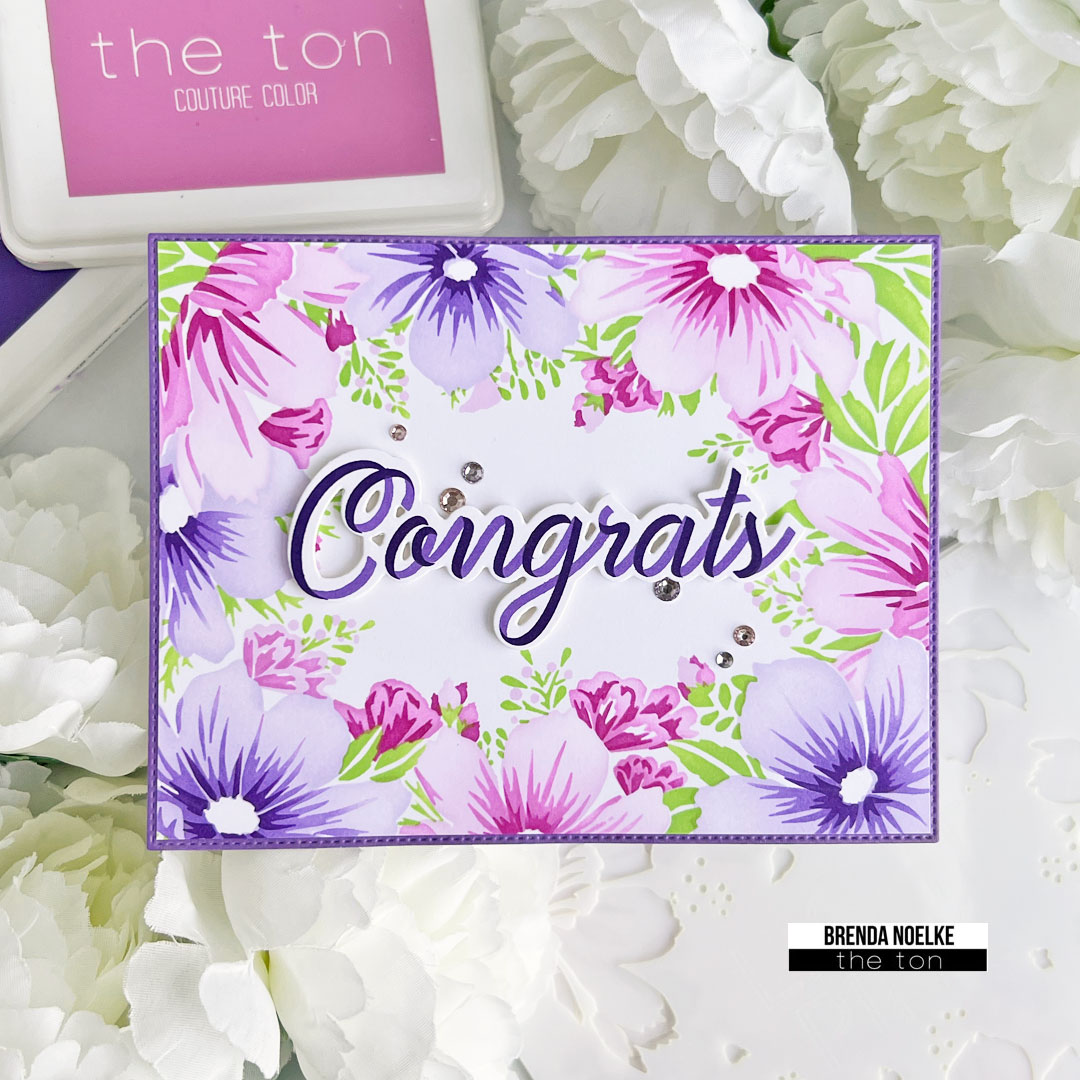 Hello, crafty friends!! Brenda here with a floral “congrats” card that would be perfect for a wedding or any celebration!! This stencil set creates a beautiful floral border that works for just about any occasion, just switch out the sentiment!!