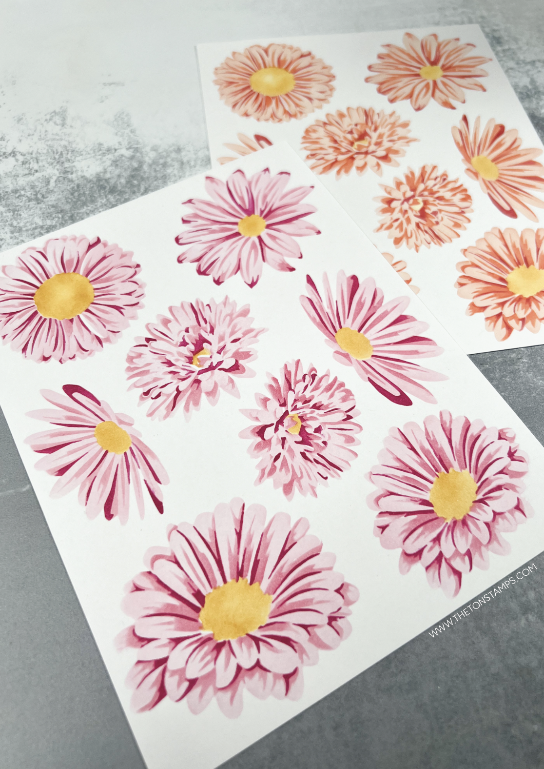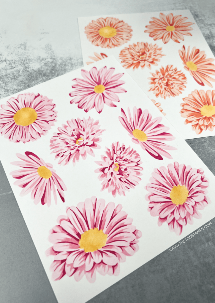 Next up is our Daisies Unlocked stencils. This set comes with four stencils and also has a coordinating die available separately. Three stencils measure approximately 5.75 x 7.5 inches (petals) and one stencil in the set measures approximately 1.5 x 7.3 inches (daisy centers). What is special about this set is that the coordinating die cuts out all of the individuals daisies in one single pass through your die cutting machine. This set is perfect for mass production.