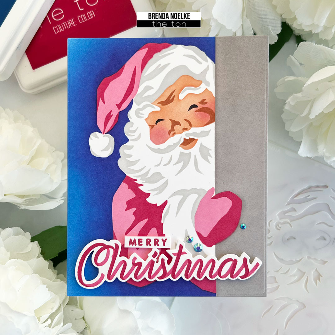 Happy Wednesday, crafty friends!! I hope you’re having a great week!! Brenda here with a pair of stenciled Santa Christmas cards to share with you today!!