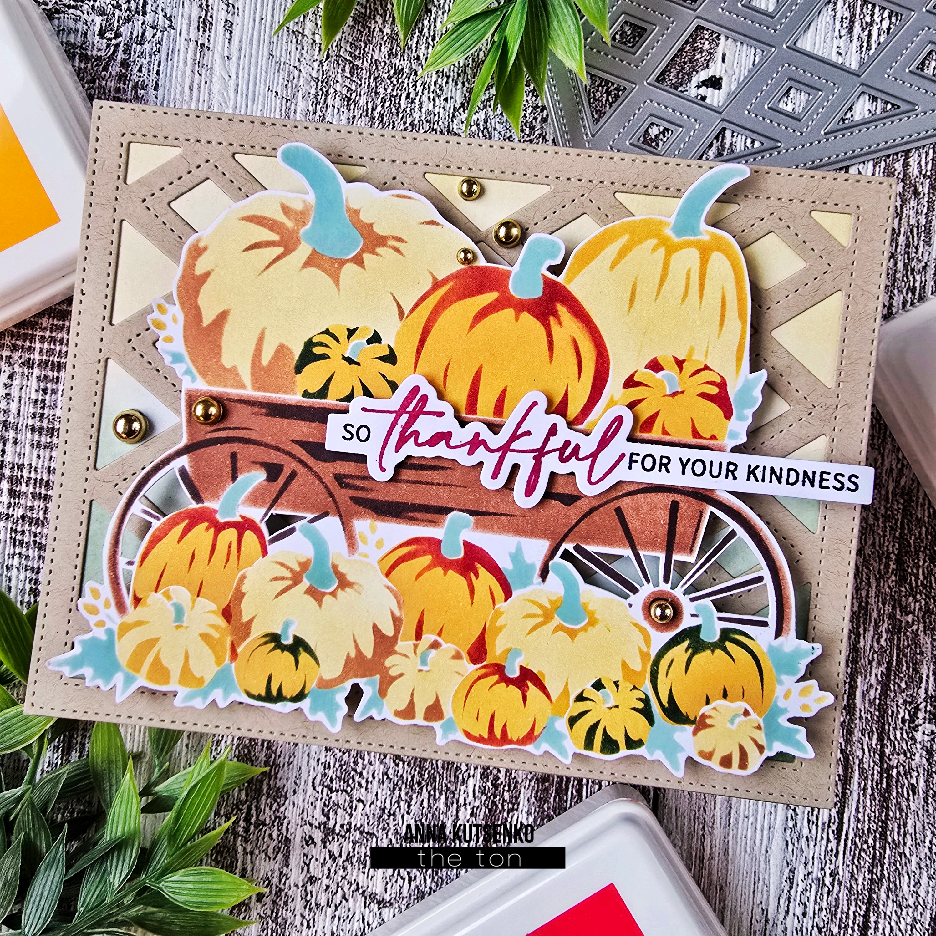 Happy Friday, everyone! Today Anna here with a Thanksgiving card showcasing Pumpkin Wagon Layering Stencils.