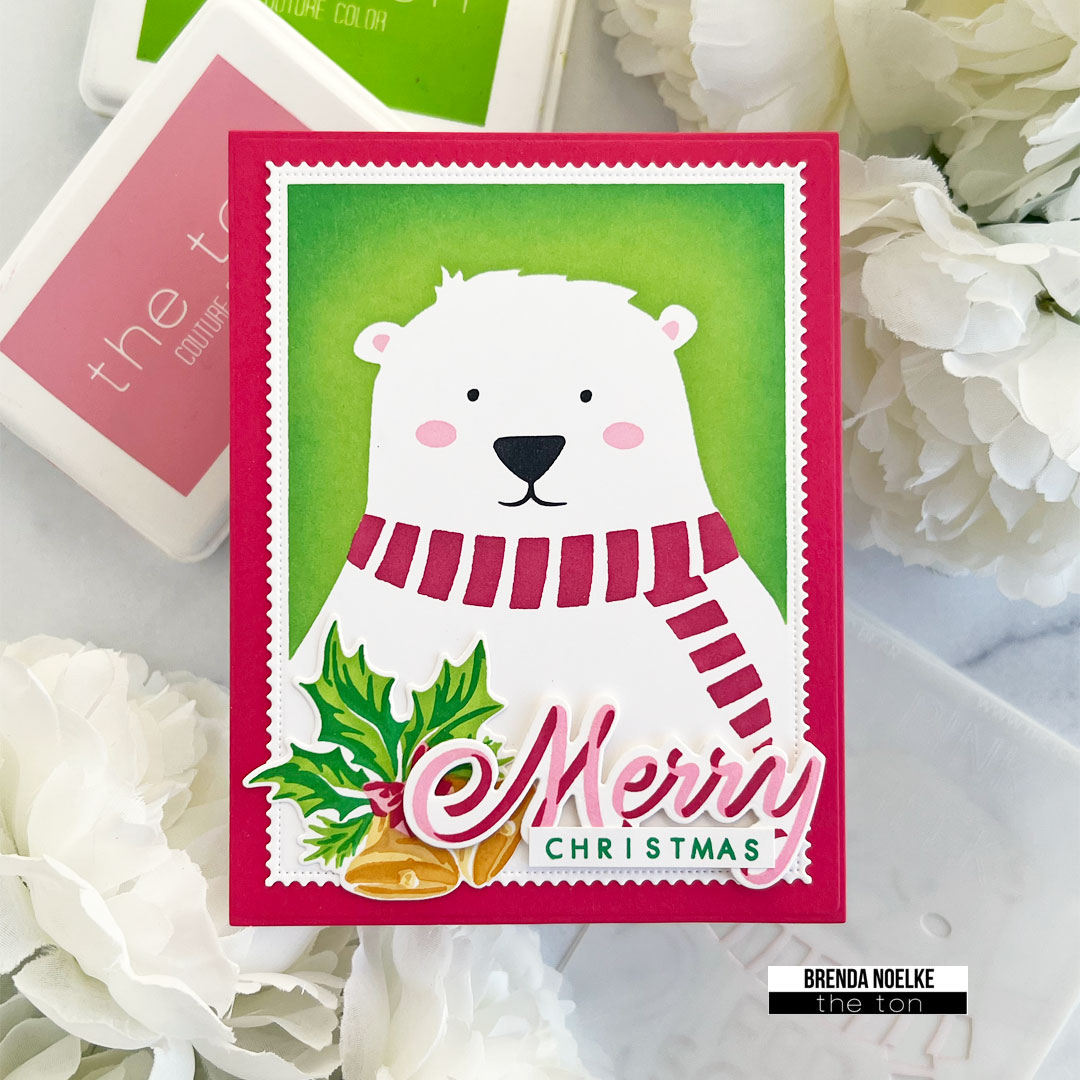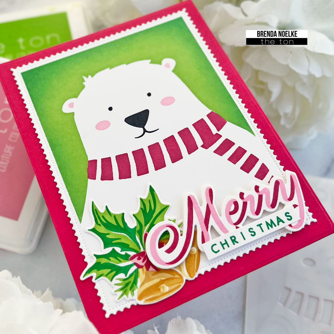 Hello, fellow crafters and happy Friday!! Brenda here with a Christmas card featuring the adorable Winter Bear Layering Stencil Set!!