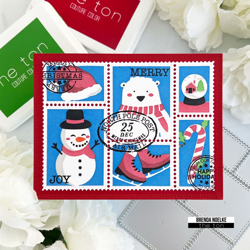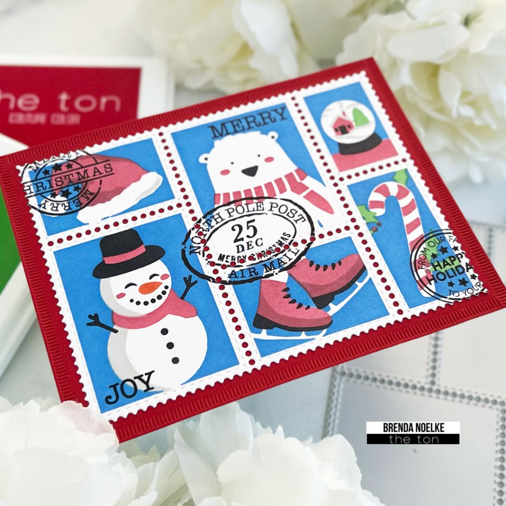 Happy Wednesday, crafty friends!! Brenda here with a pair of Christmas cards featuring some of the newest winter stencil additions that coordinate with the Postage Party Die!!