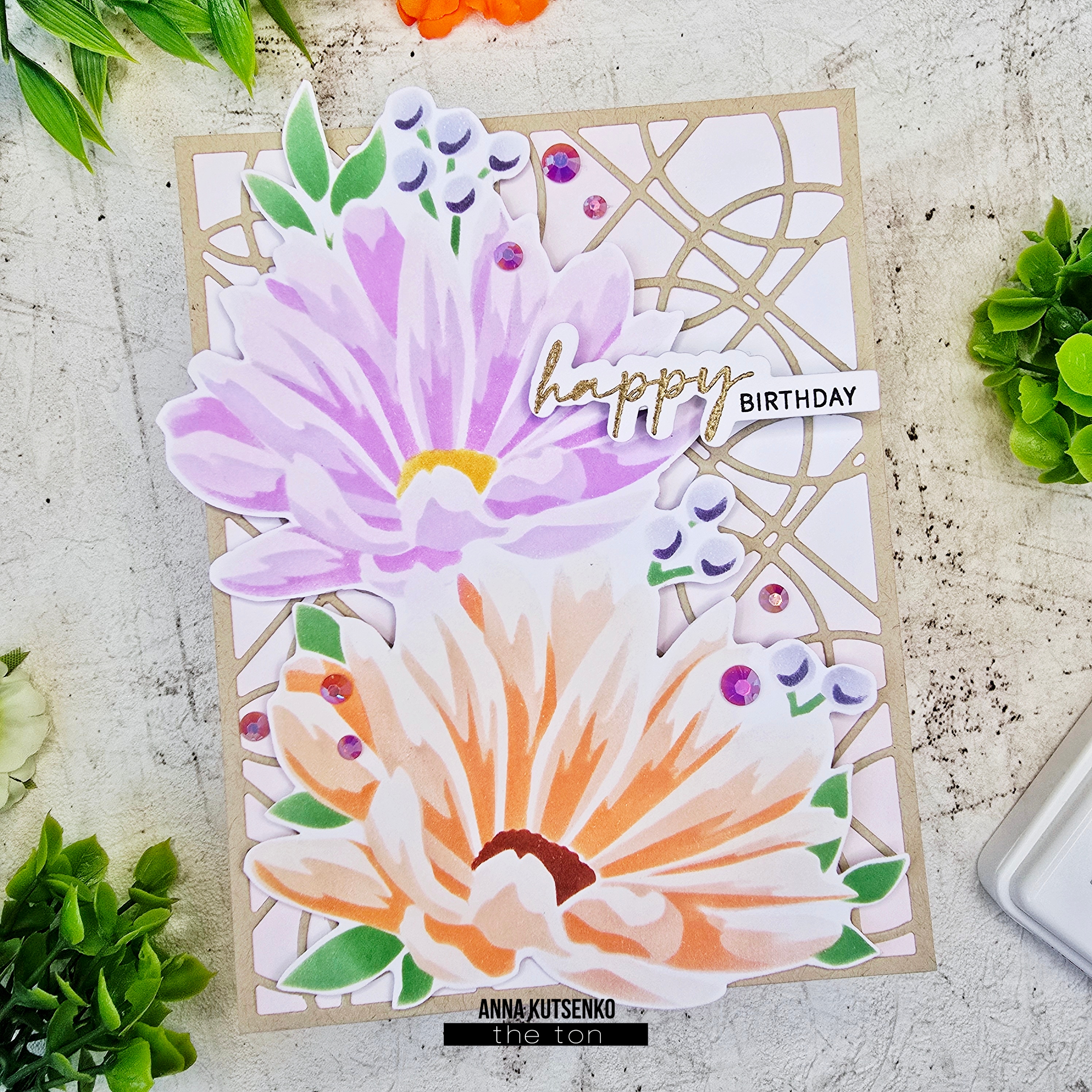 Hello and happy Monday, everyone! Hope you have a great start of the week. Anna here again with a floral card featuring beautiful Lively Cosmos layering stencils.