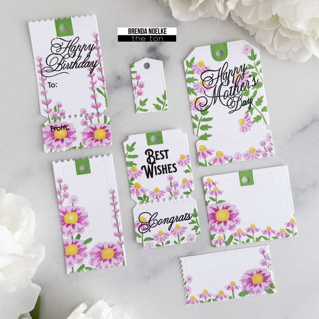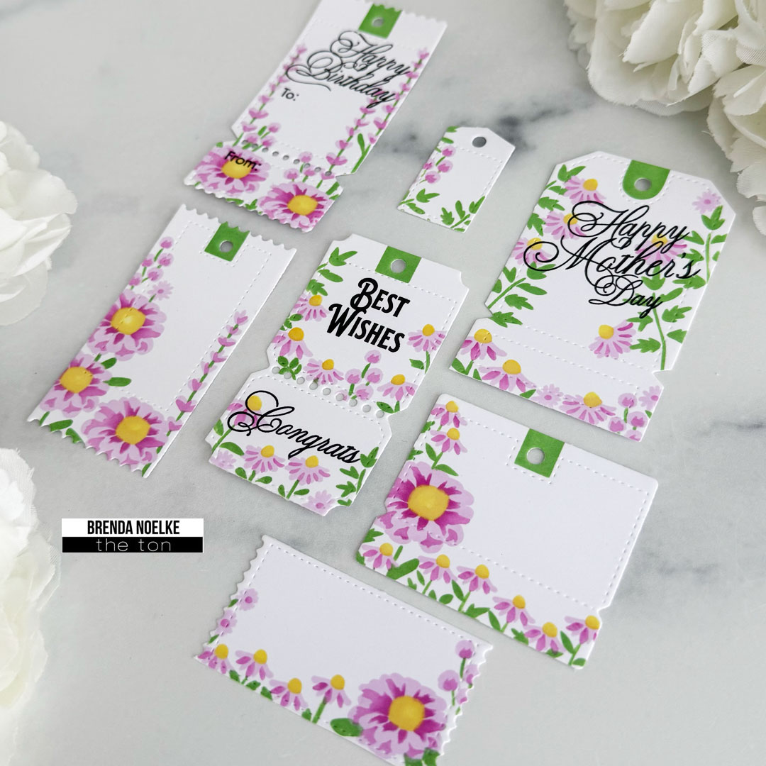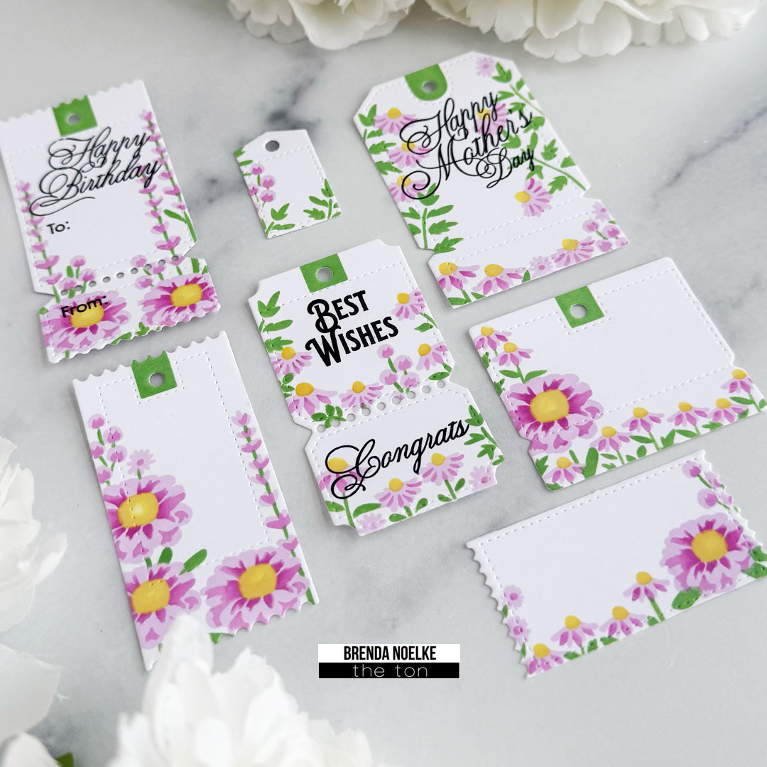 Hello, fellow crafters!! Brenda here today sharing some tags featuring the Floral Tags Stencils and the Mass Tags Die Set!!