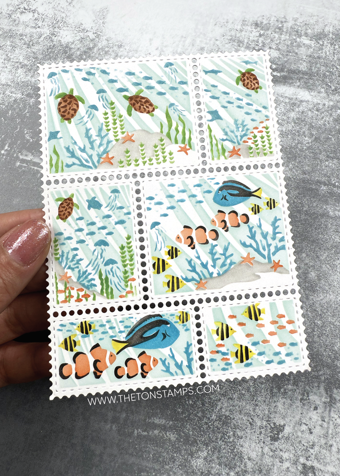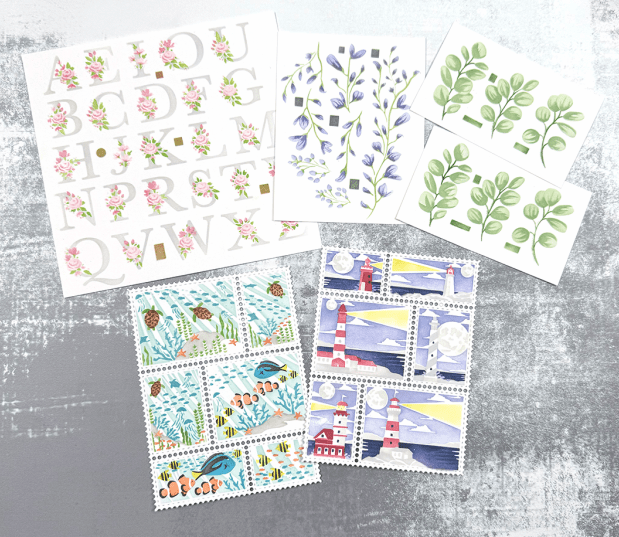 Next up is our Postage: Sea layering stencils. This stencil set comes with five stencils and coordinates with our Postage Party die.