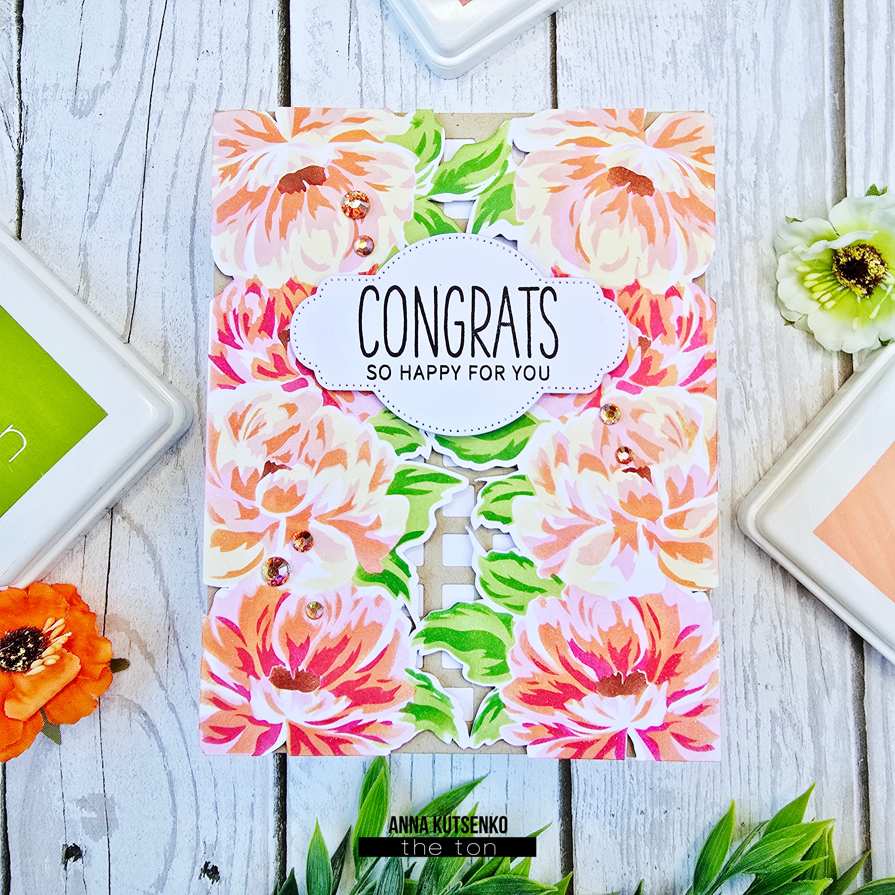 Hello,everyone! Anna here today sharing a card I made using beautiful Blended Peonies Large Stencils.
