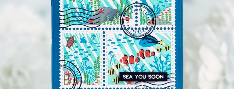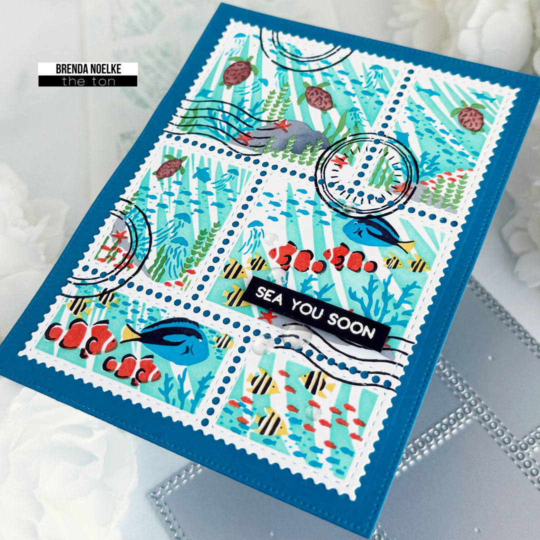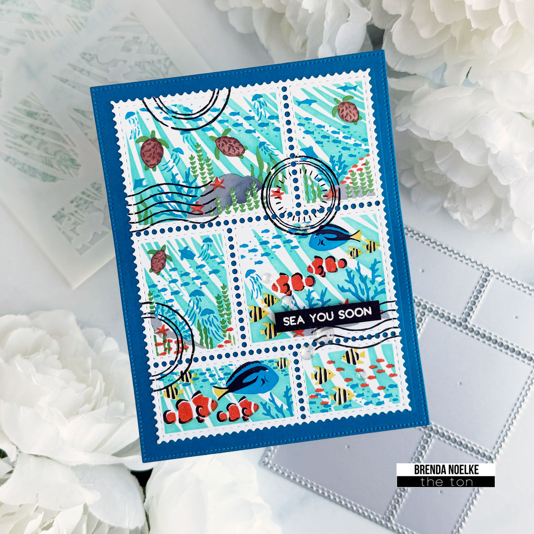 Happy Friday!! Brenda back with another postage card to share today!! This one features the Postage: Sea Layering Stencil Set!! So perfect for summer!!