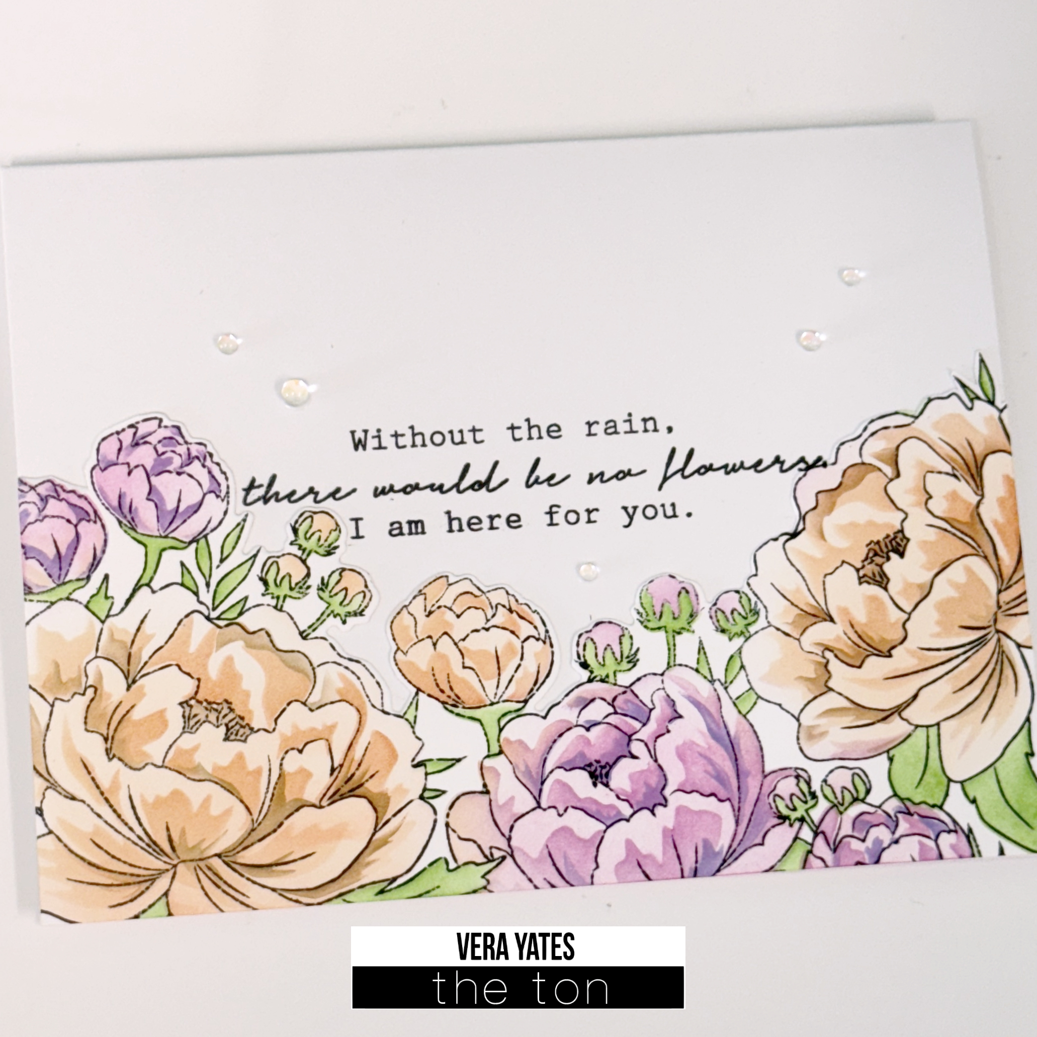 Hi there crafty friends. Vera here. Today, I want to showcase the gorgeous Peony Border Stamp & Peony Border Layering Stencil set. I love this sets that somehow I ended up with 4 cards. Was only planning to do 1 or at the most 2. But hey, when mojo cooperating, might as well take advantage of it, right?