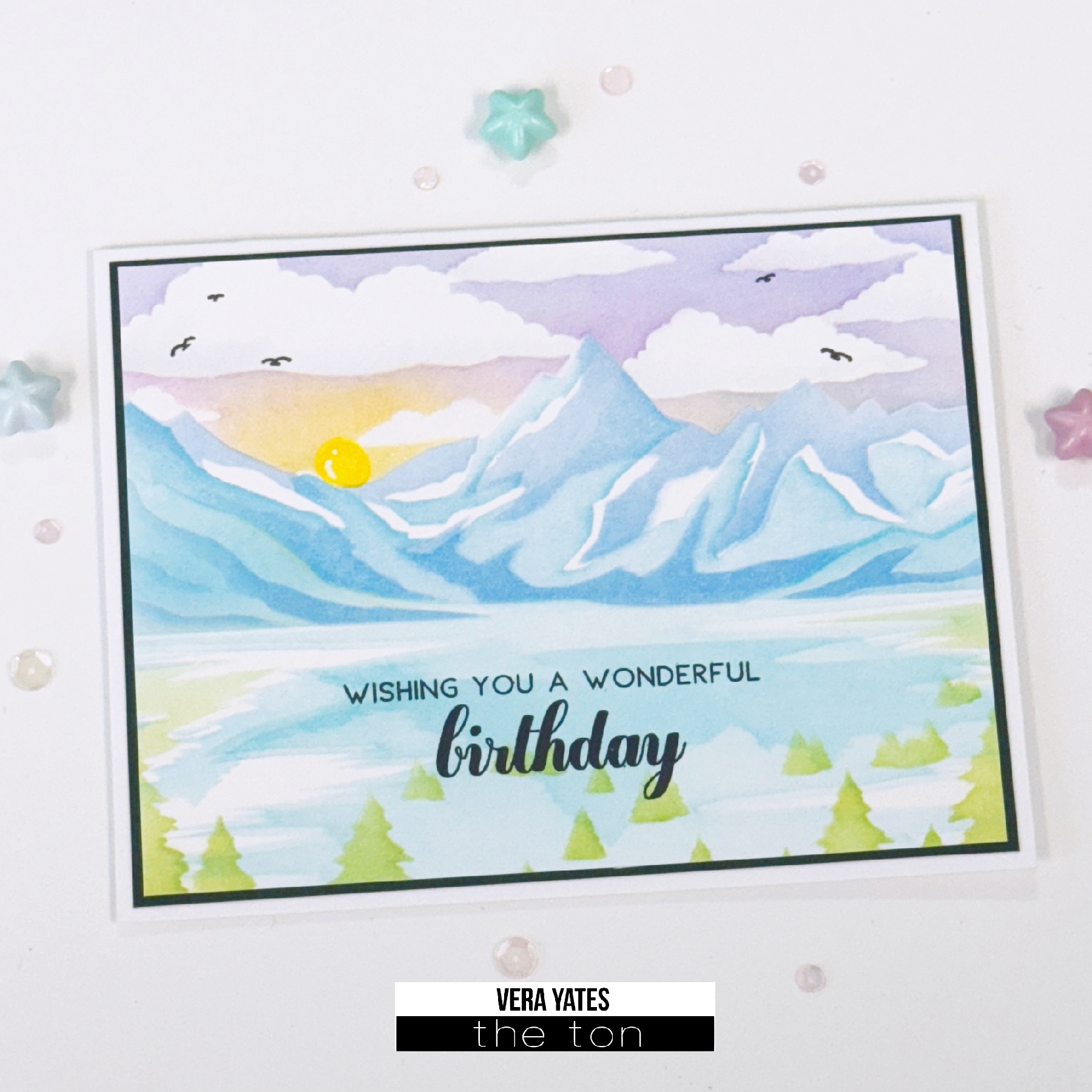 Hi friends. Vera here to bringing you inspiration on behalf of The Ton as we get ready for the weekend. Today, I am featuring one of the scene stencil set that was part of our Summer release, Glacierscape Layering stencil.