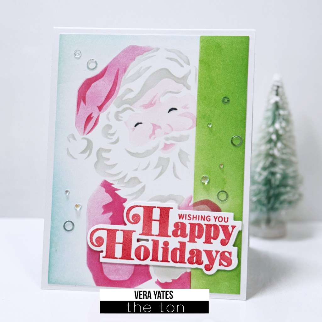 Hi peeps. Happy Monday. Vera here. As we’re only a few weeks away from Christmas, let’s get our Christmas card stash started, shall we? Santa probably one of my favorite image for Christmas, so for today I want to feature the new Peeking Santa Layering Stencil set.