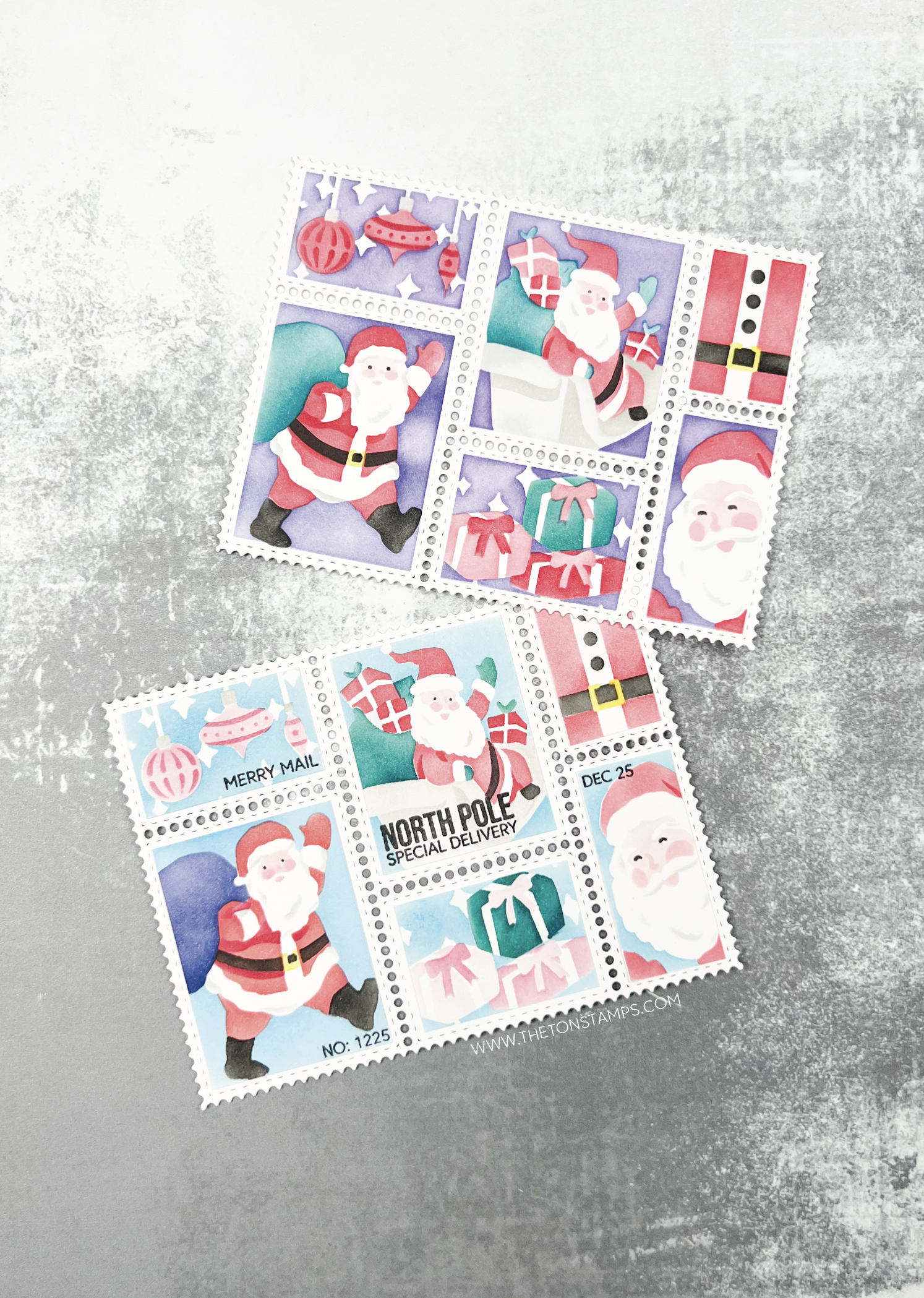 Postage Jolly Layering Stencils includes 6 stencils all approximately 4.4 x 5.5 inches. Coordinates with our Postage Party Die available separately here