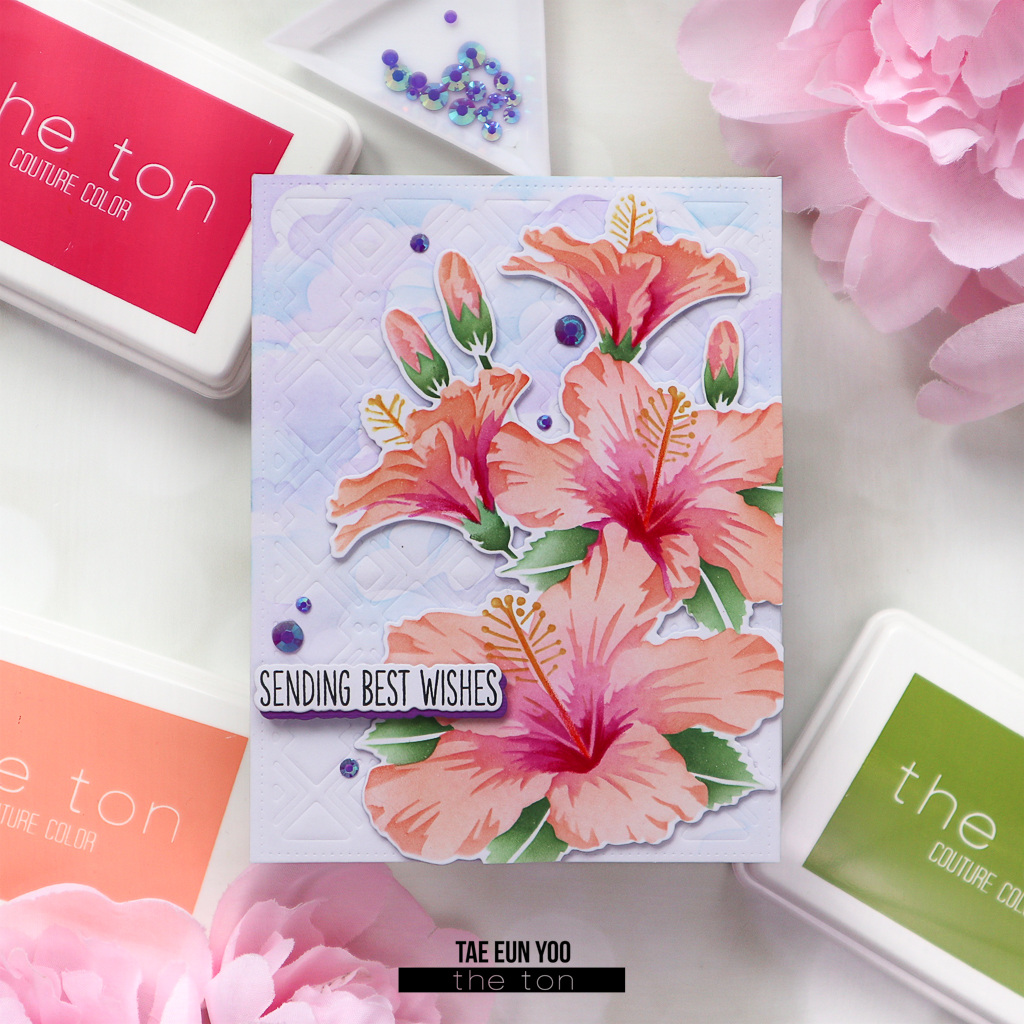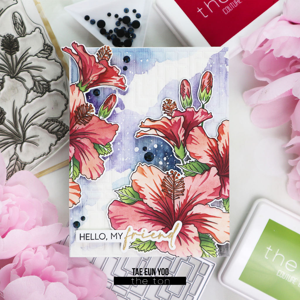 Hello, everyone! Hope you’re having a lovely weekend! It’s TaeEun here today with a stenciled hibiscus card. I used the Climbing Hibiscus layering stencils to create my card. There is a coordinating outline stamp called Coming Up Hibiscus. However, I didn’t use it to give my card a no-line coloring look. You can achieve this easily using the layering stencils !