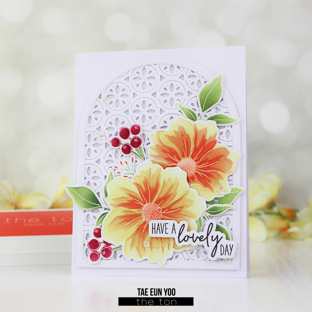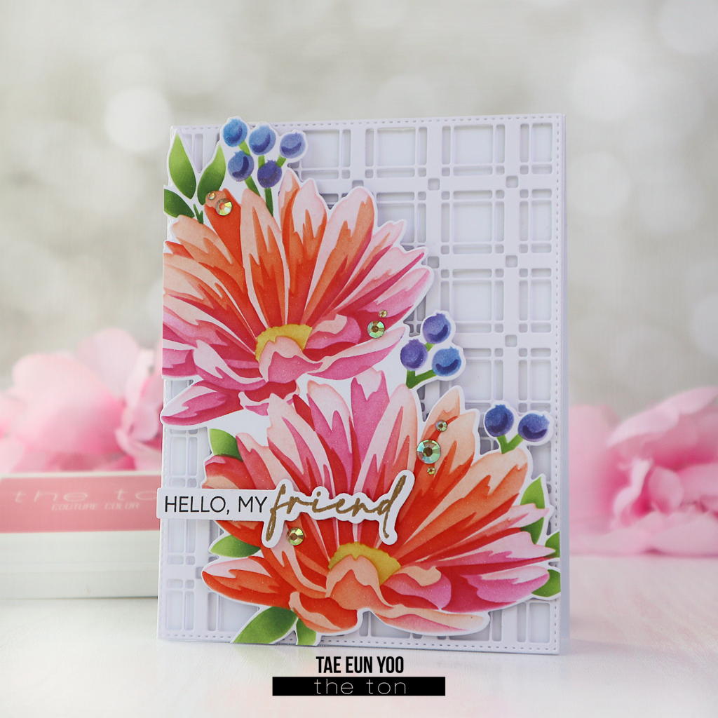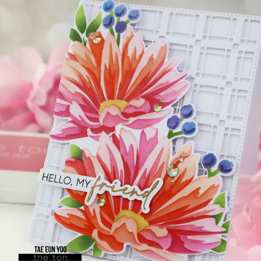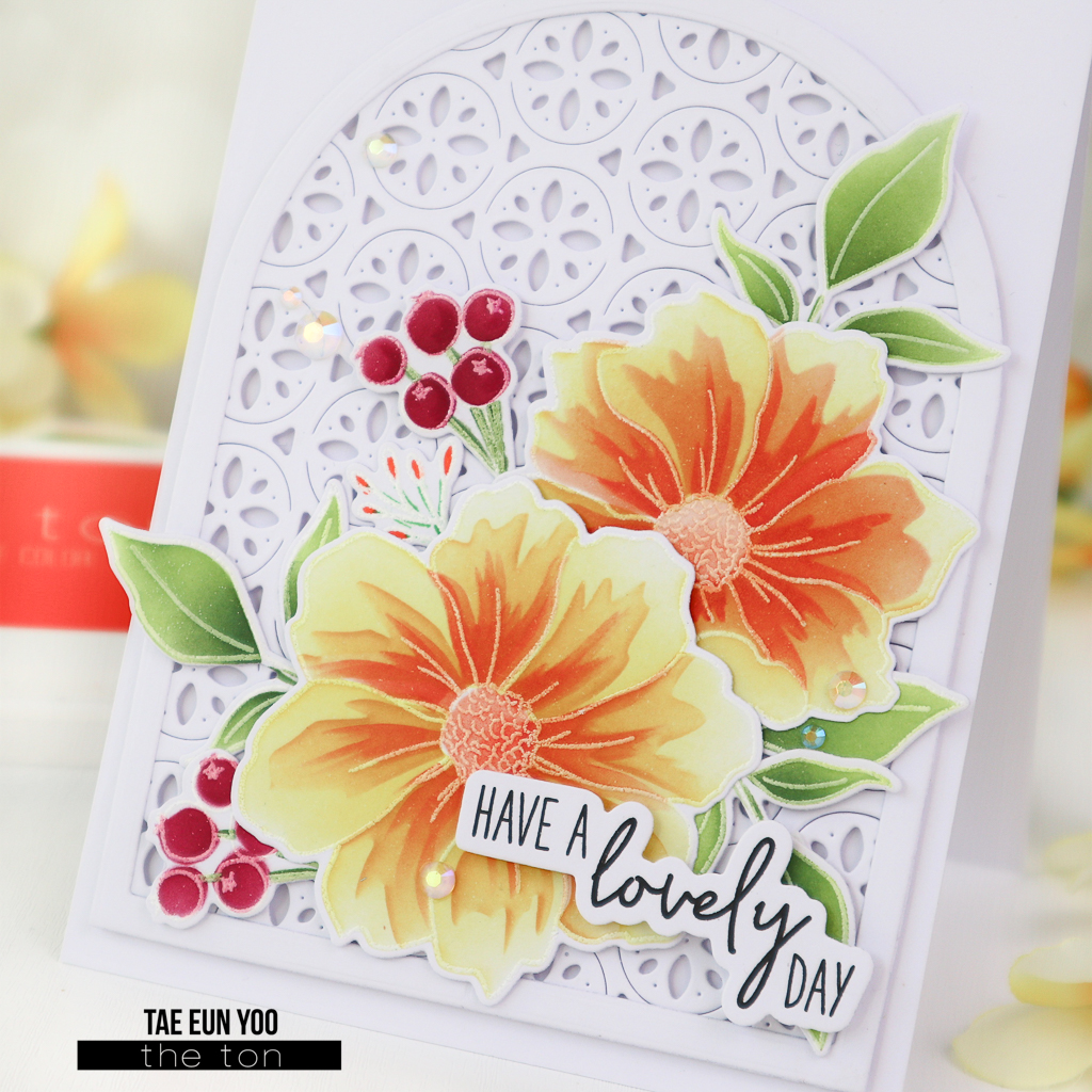 Hello everyone! Hope you’re having a great week so far! It’s TaeEun here today with three floral cards! I used all the new die sets from the Winter 2023 Die Release to create the backgrounds of my cards ! And, of course, the main floral images are showcasing the new floral layering stencils.